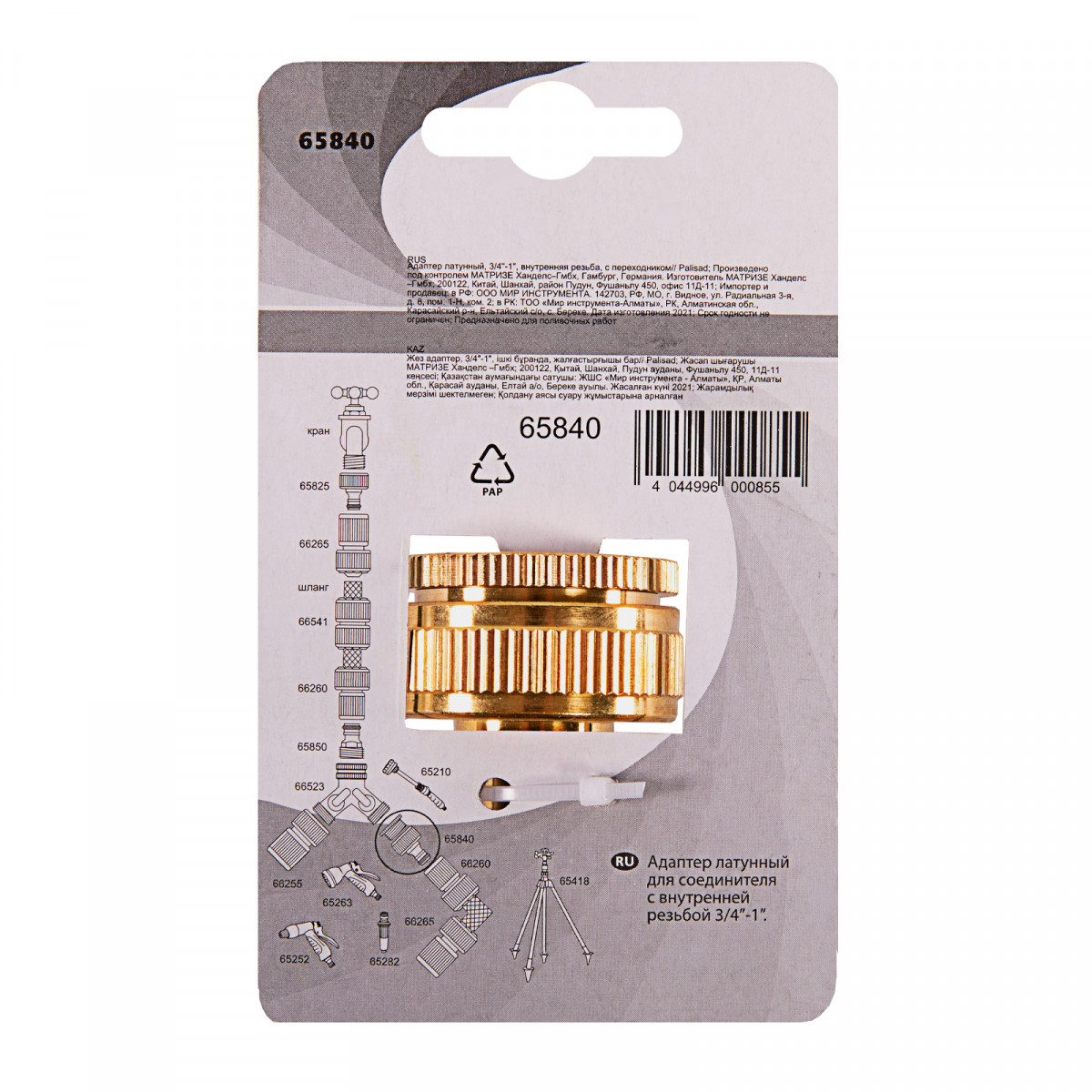 Адаптер латунный, 3/4-1, внутренняя резьба, с переходником Palisad