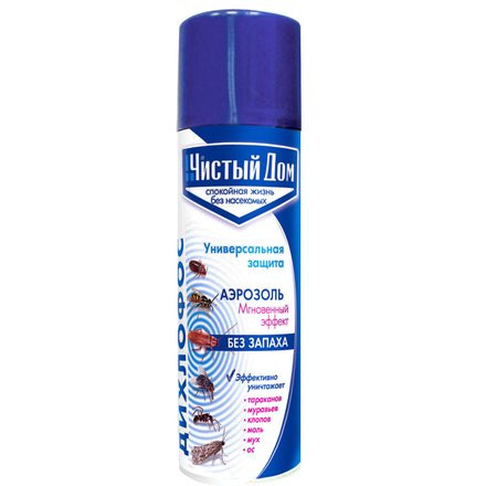 Средство мгновенного действия для уничтожения летающих насекомых: ОС, мух, комаров, москитов и бабочек моли и ползающих насекомых: тараканов, муравьев, постельных клопов, блох.