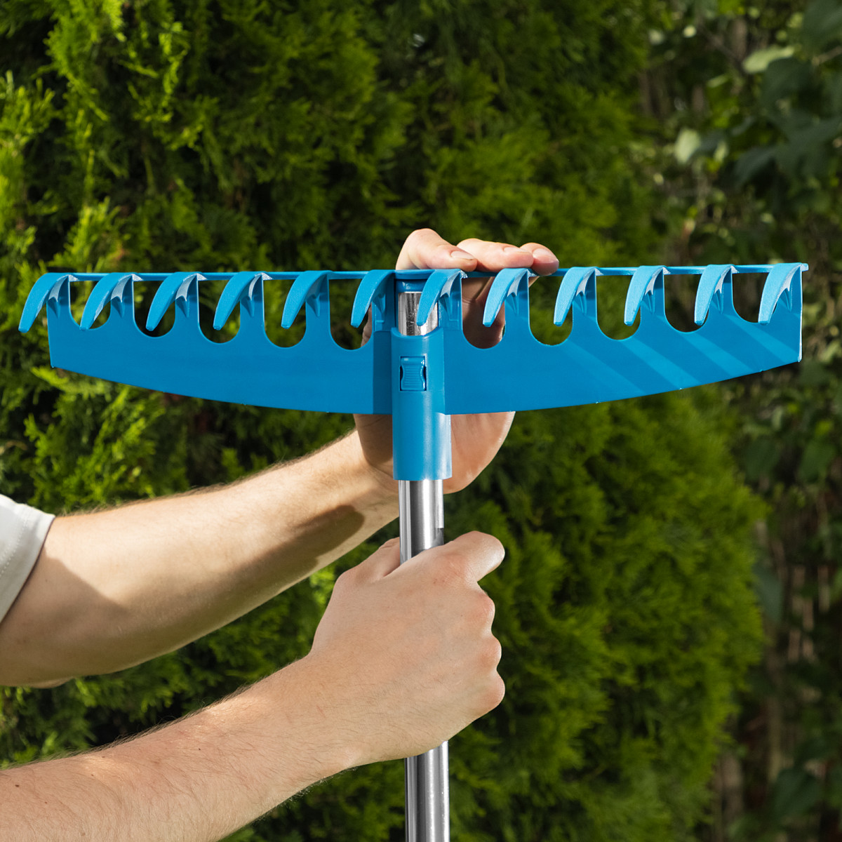 Алюминиевый черенок Palisad Luxe 61792 длиной 1580 мм, с фиксатором, совместим с граблями 61733, 61732, 61793. Во время работы нагрузка на позвоночник минимальна: комфортная длина черенка позволяет не нагибаться, а его вес составляет 450 г. Подпружиненный фиксатор надежно удерживает насадку-грабли. Изделие пригодится для уборки газонов и грядок.
