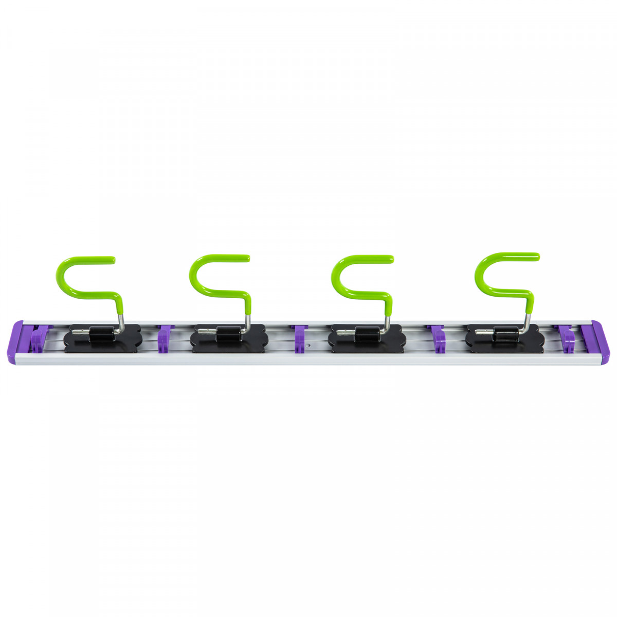 • Алюминиевый держатель выдерживает нагрузки до 15 кг, крючки — до 3 кг каждый.