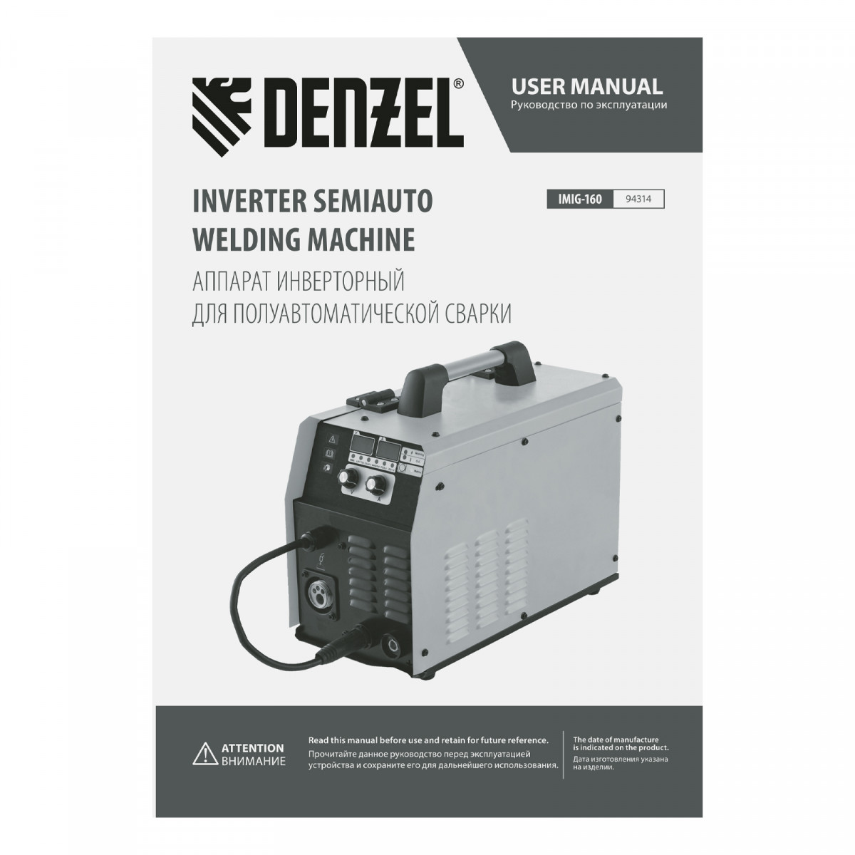 Аппарат инвертор. полуавтомат. cварки IMIG-160 Synergy, 160 А, ПВ 60%, катушка 5 кг Denzel