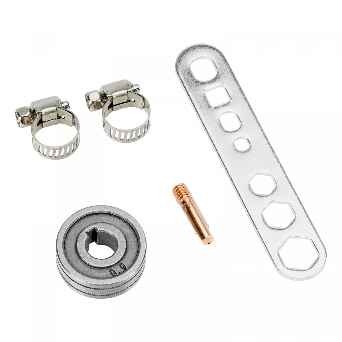• Продуманная комплектация — аппарат поставляется с горелкой MIG, газовым шлангом и сварочными проводами (с электрододержателем и зажимом «земля»).