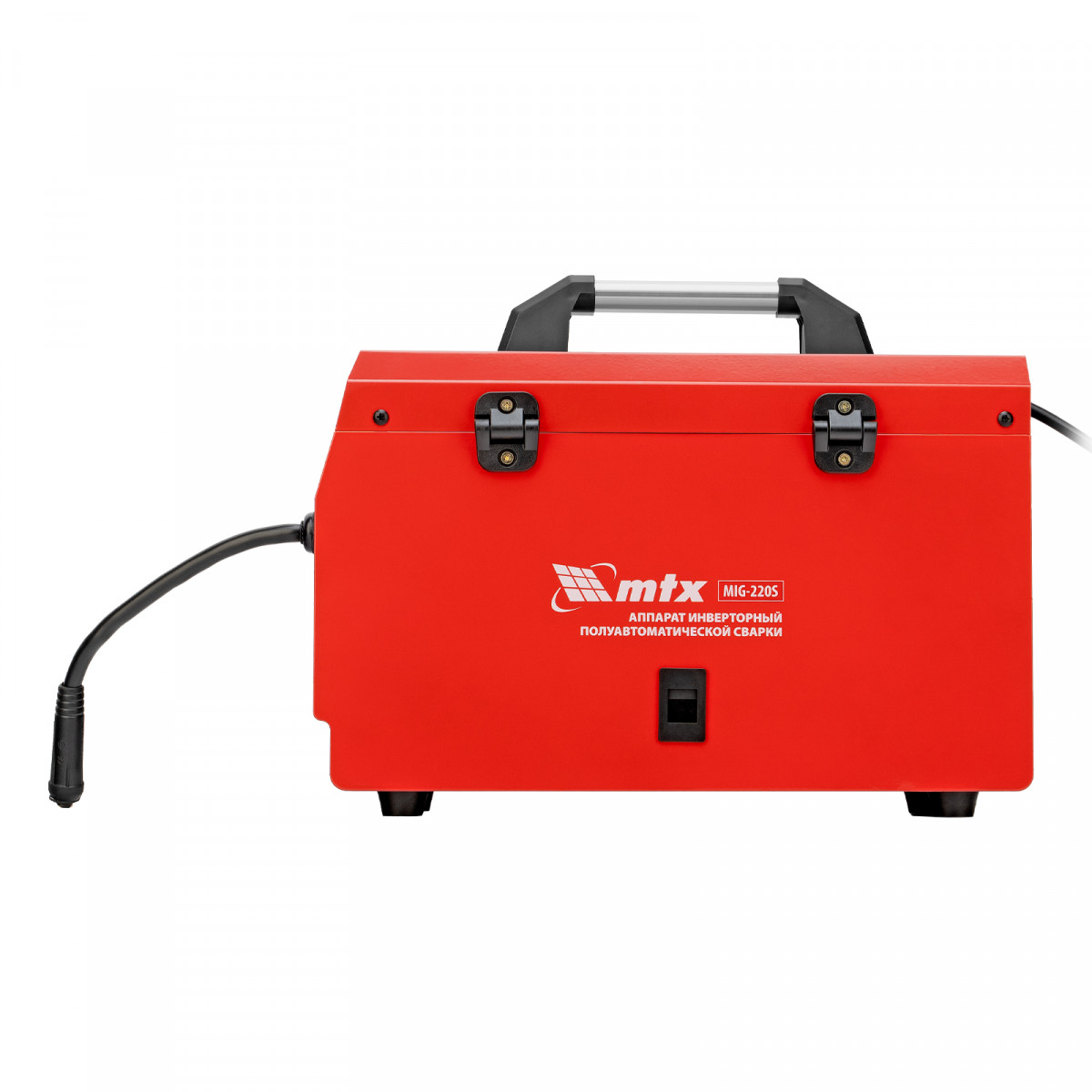 Инверторный аппарат полуавтоматической сварки MTX MIG-220S 94304, предназначенный для сварки на максимальном токе до 220 А, имеет продолжительность включения 60% и совместим с катушками весом до 5 кг. Используется для работы со сталями, черными и цветными металлами. Сварочный аппарат изготовлен с использованием передовой технологии IGBT, позволяющей получать стабильный сварочный ток на выходе. Аппарат имеет высокий КПД при низком энергопотреблении, способен работать при пониженном до 180 В напряжении.