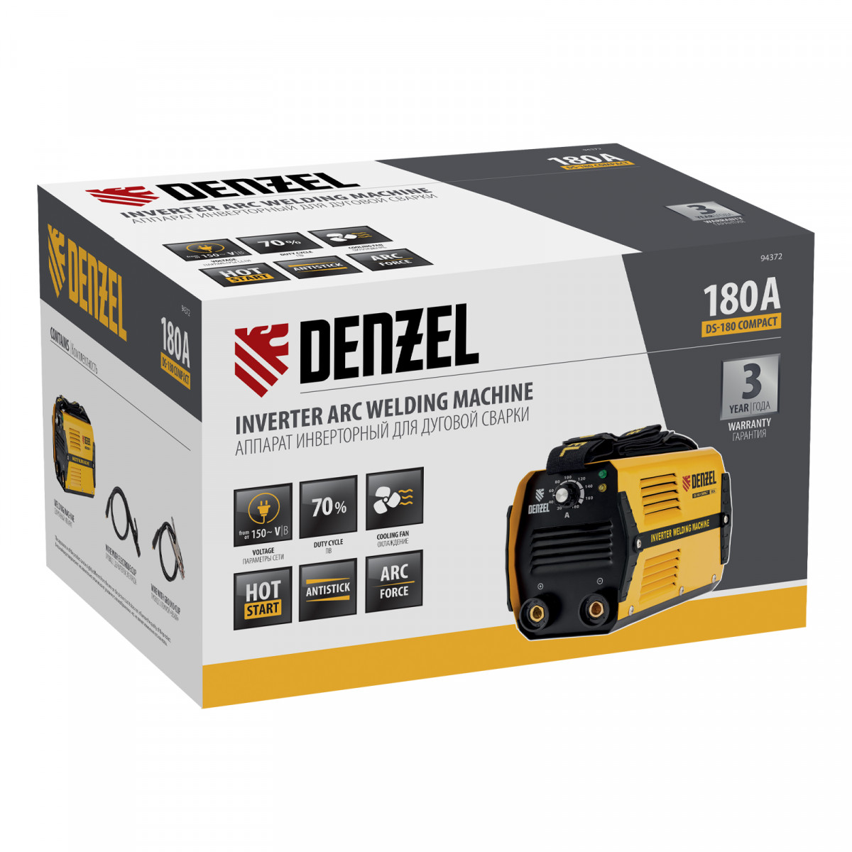 Аппарат инверторный дуговой сварки DS-180 Compact, 180 А, ПВ 70%, диаметр электрода 1.6-4 мм Denzel
