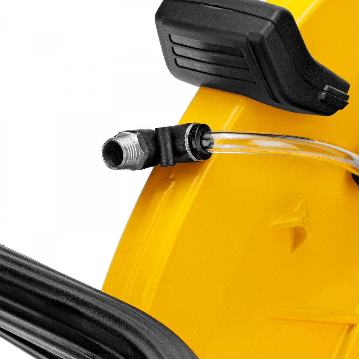 Бензорез оснащен универсальным штуцером для подачи воды. Использование водяного охлаждения позволяет уменьшить количество образующейся пыли и снизить нагрузку на двигатель.