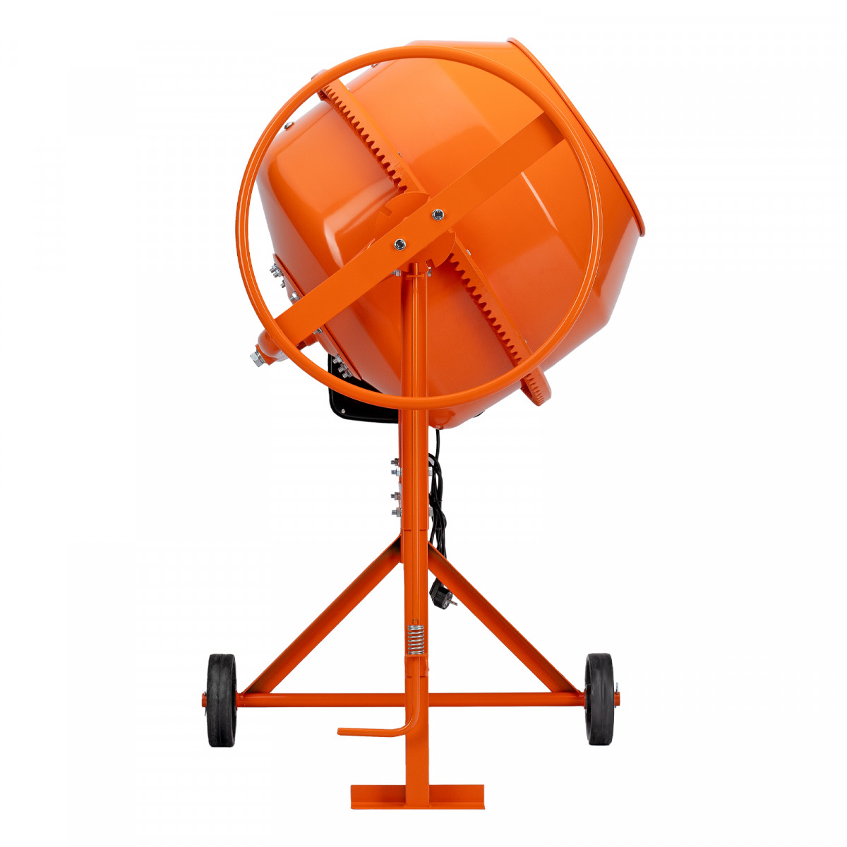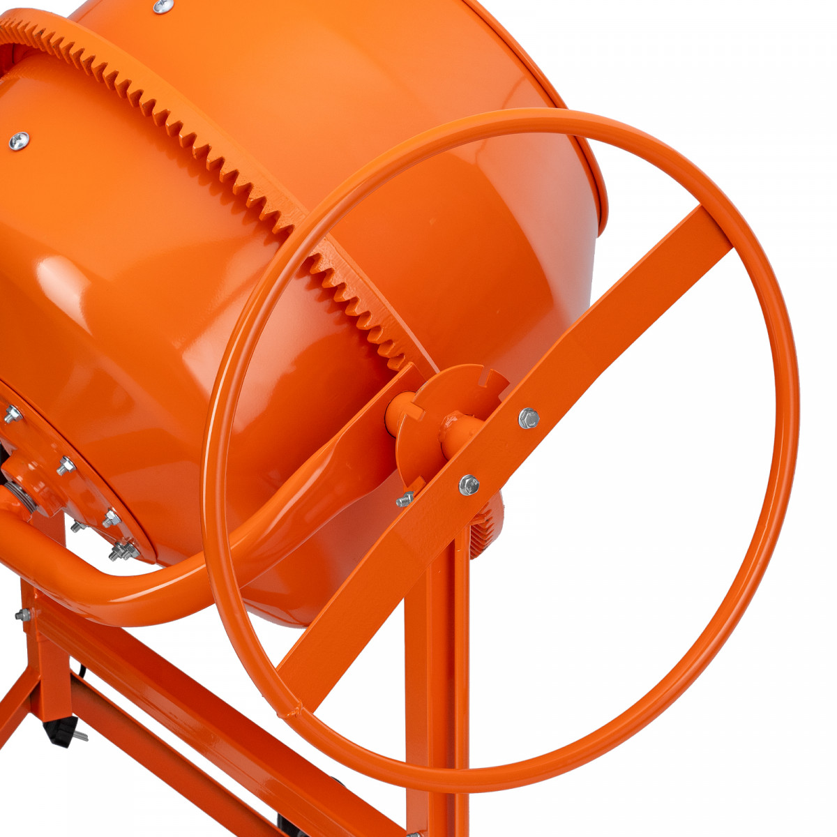 - Удобная загрузка и выгрузка смеси — барабан наклоняется при помощи маховика и легко фиксируется в нужном положении.