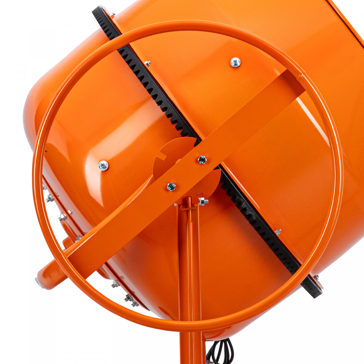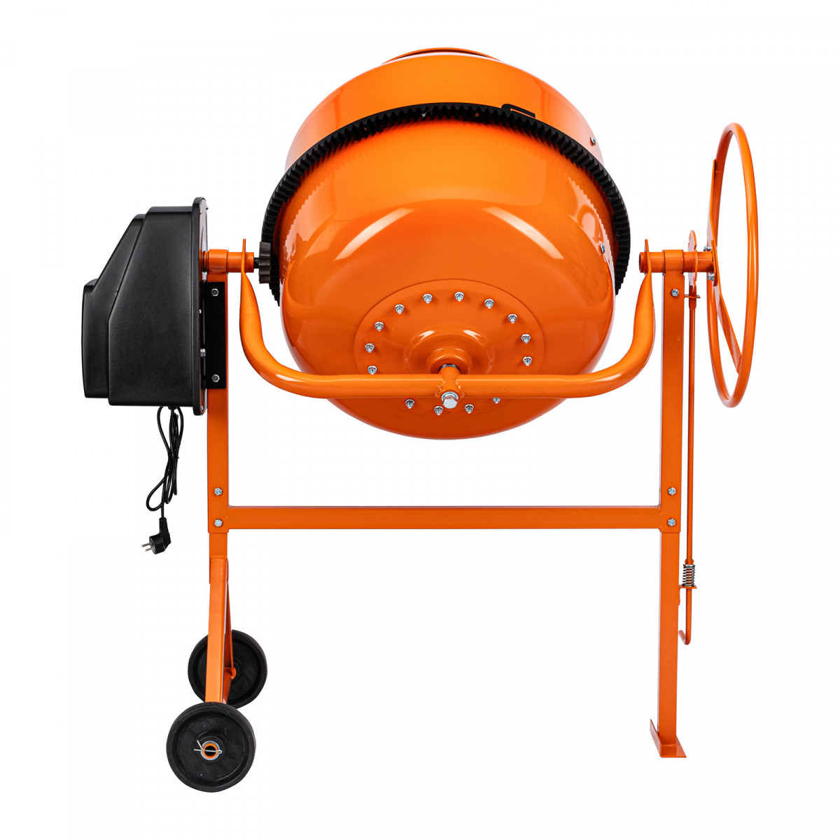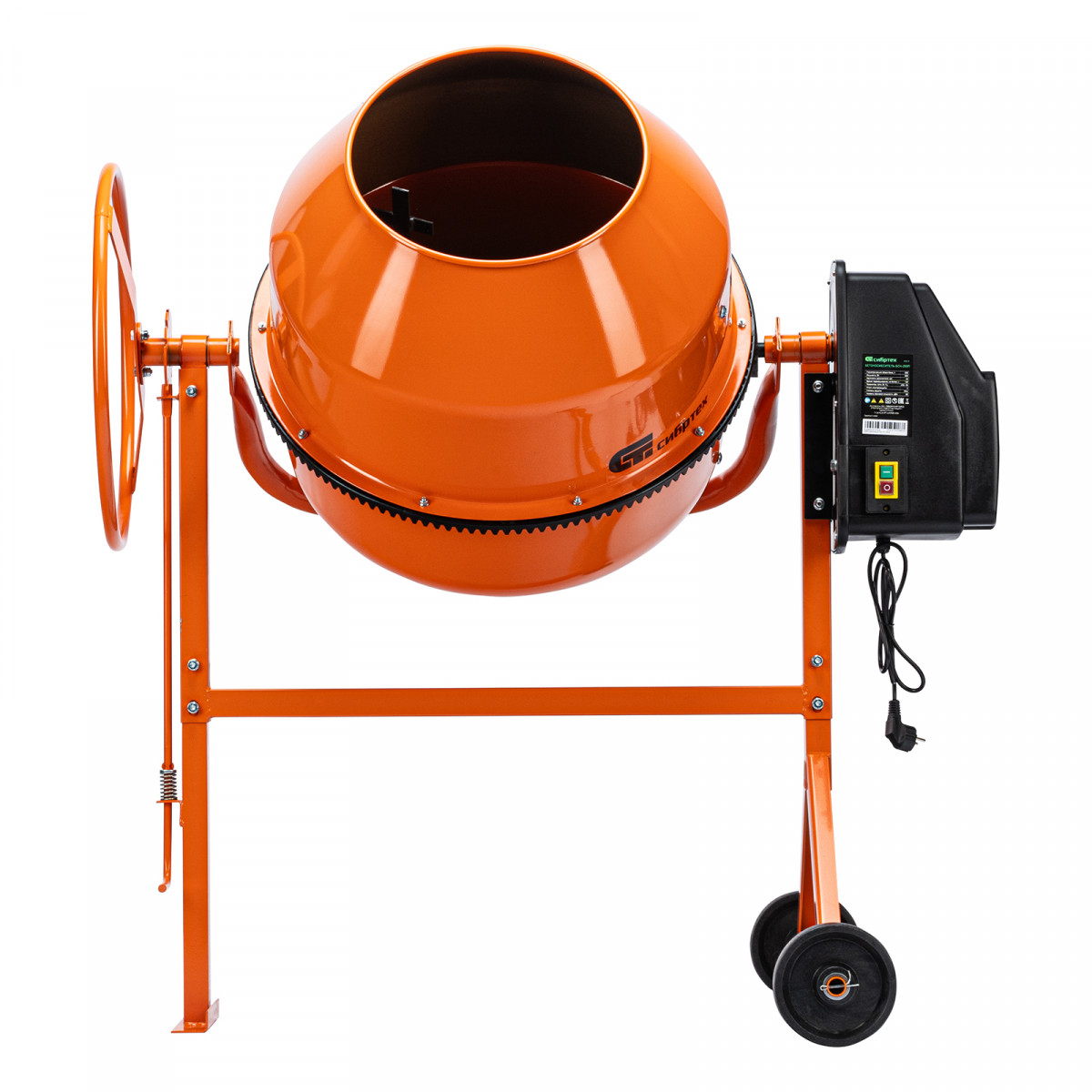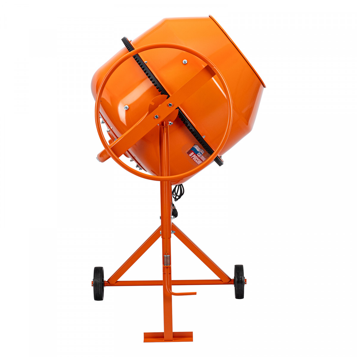 • Удобная загрузка и выгрузка смеси — барабан наклоняется при помощи маховика и легко фиксируется в нужном положении.