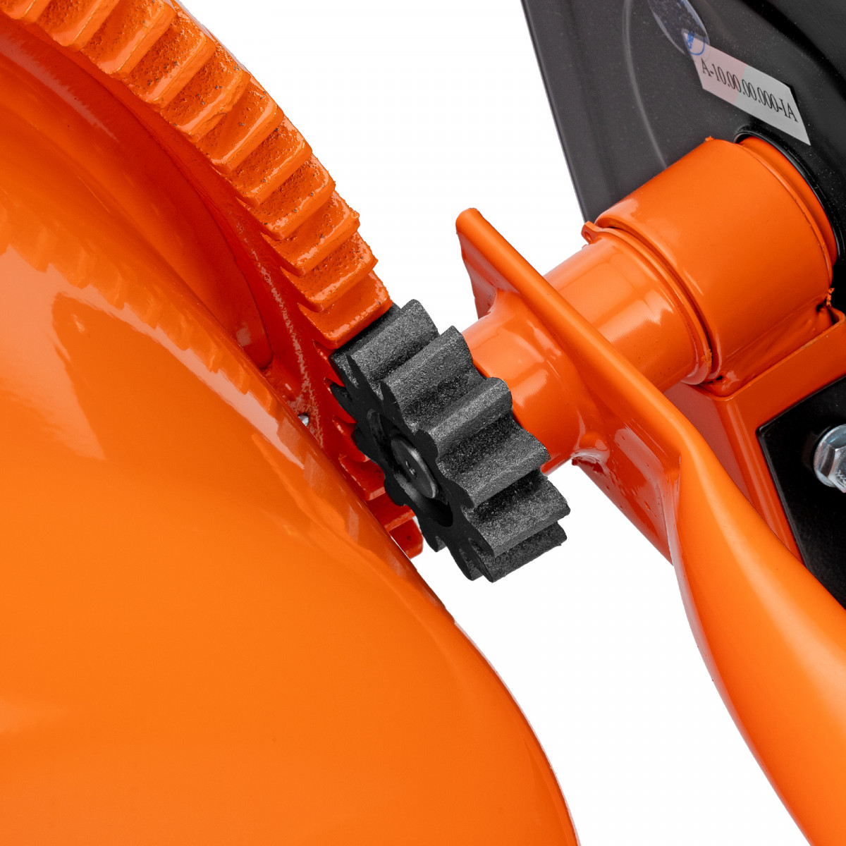 • Удобная загрузка и выгрузка смеси — барабан наклоняется при помощи маховика и легко фиксируется в нужном положении.