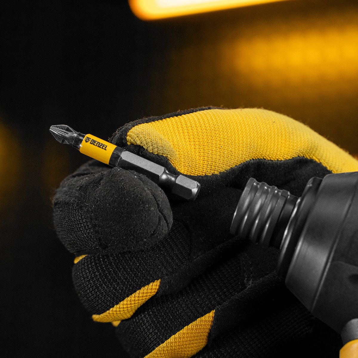 - Защита от подделок — цветное кольцо с логотипом ТМ Denzel на каждой бите подтверждает оригинальность товара.