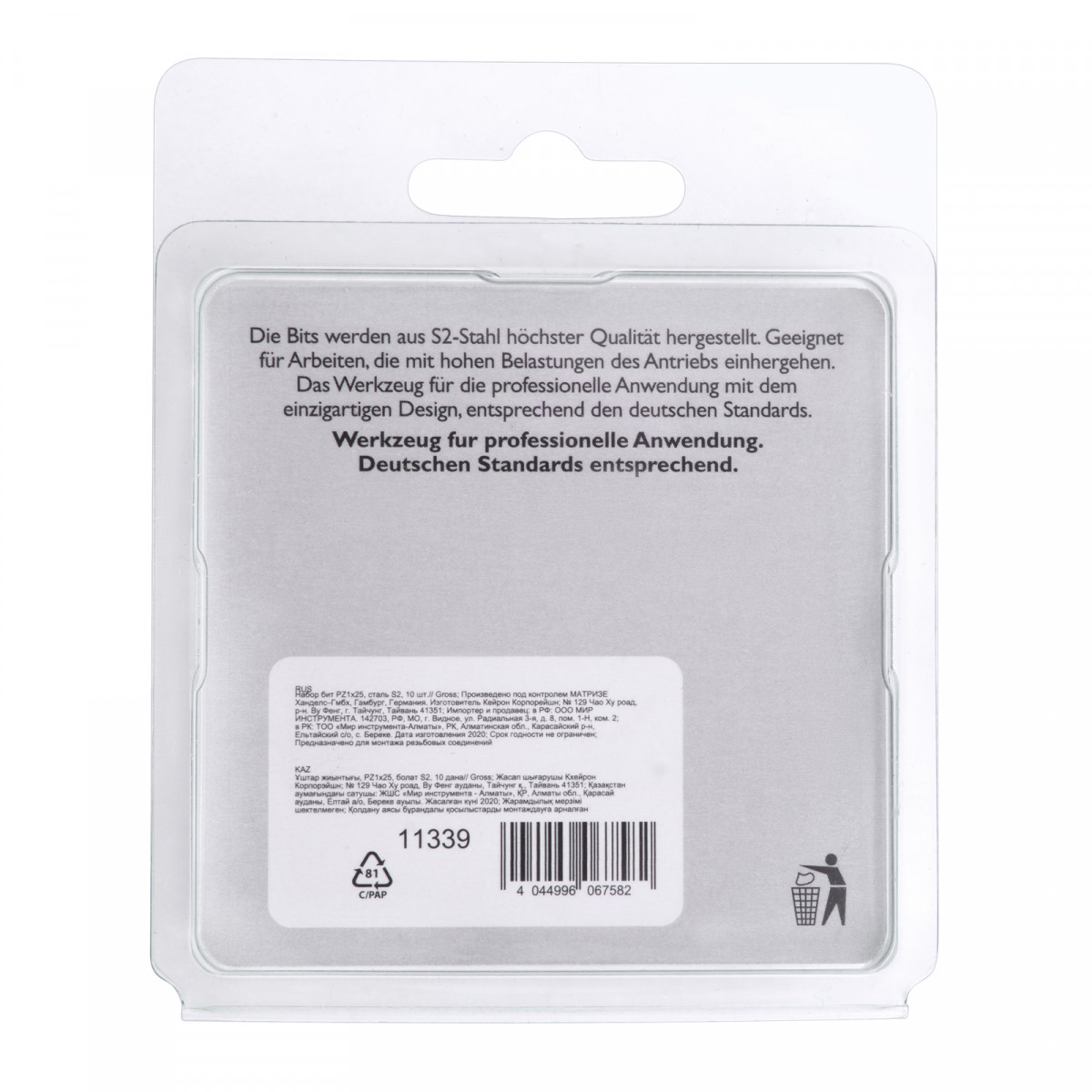 Набор бит Gross 11339 состоит из 10 насадок типоразмера PZ1 и длиной 25 мм, с хвостовиком 1/4 дюйма, изготовленных из стали S2 и предназначенных для шуруповертов. Оснастки служат для монтажа и демонтажа шурупов, саморезов и других резьбовых соединений. Шлиц PZ имеет 4 дополнительных ребра, благодаря чему предотвращается проскальзывание биты в крепеже, повышаются точность и эффективность работ.