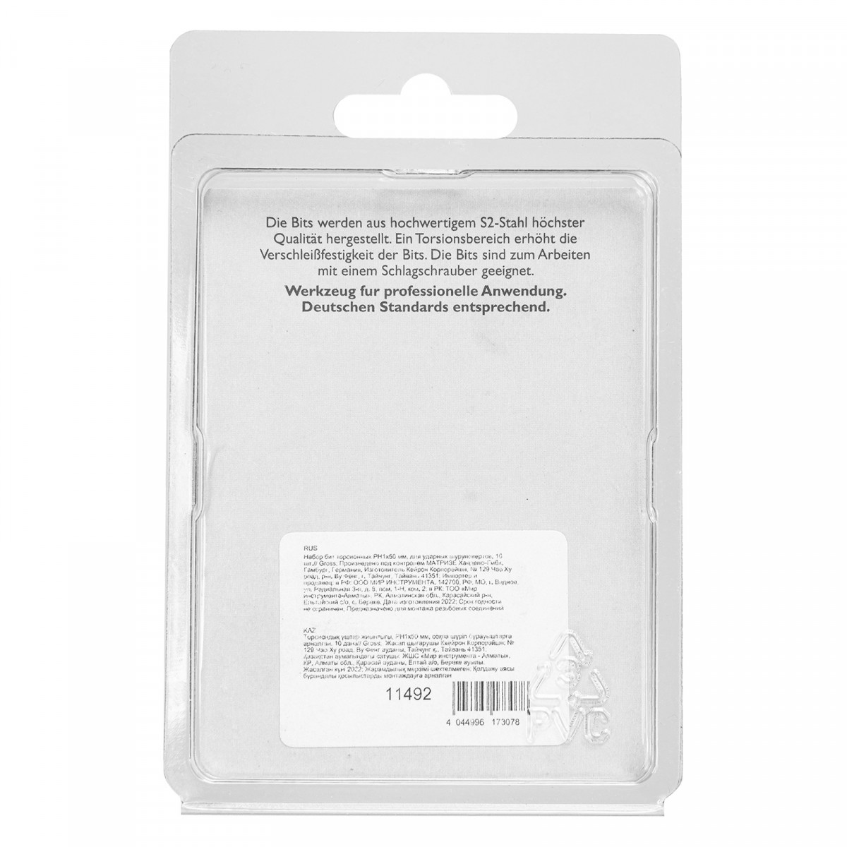Набор торсионных бит PH1 x 50 мм Gross 11492, 10 шт., предназначен для монтажа и демонтажа резьбовых соединений с помощью ударного шуруповерта. Он незаменим в строительных, слесарных и монтажных работах, в автосервисах, при проведении ремонта в доме. Торсионная зона способна пружинить, за счет чего она частично амортизирует тангенциальный удар от шуруповерта. Такое решение позволяет равномерно распределить нагрузку по бите и избежать поломки шлица.