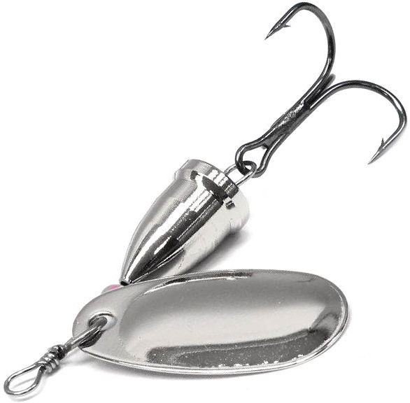 Блесна вращающаяся - это вертушка-тандем с двумя лепестками, что удваивает гидроакустический эффект и при проводке создает более сильные высокочастотные колебания, что приманивает любого хищника и делает ее более уловистей. Первый лепесток меньше второго, поэтому вихри, которые создаются за первым лепестком, не влияют на работу последнего лепестка. Лепестки имеют длинную и острую форму, которые прекрасно работают на течении и придонной ловле. Быстро замечают и атакуют такого рода приманки щука.