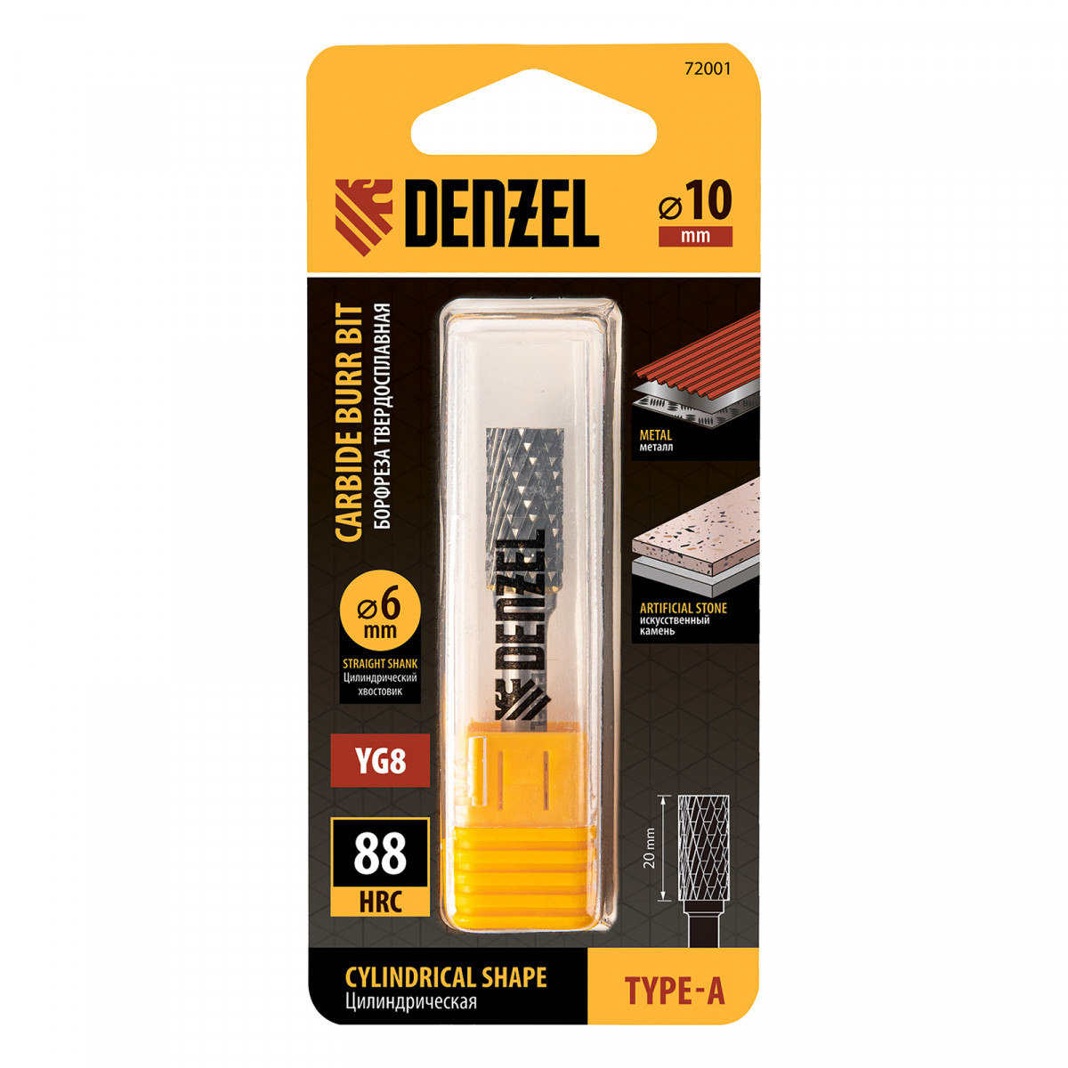 Борфреза по металлу твердосплавная, цилиндрическая, тип-А, 10 мм Denzel