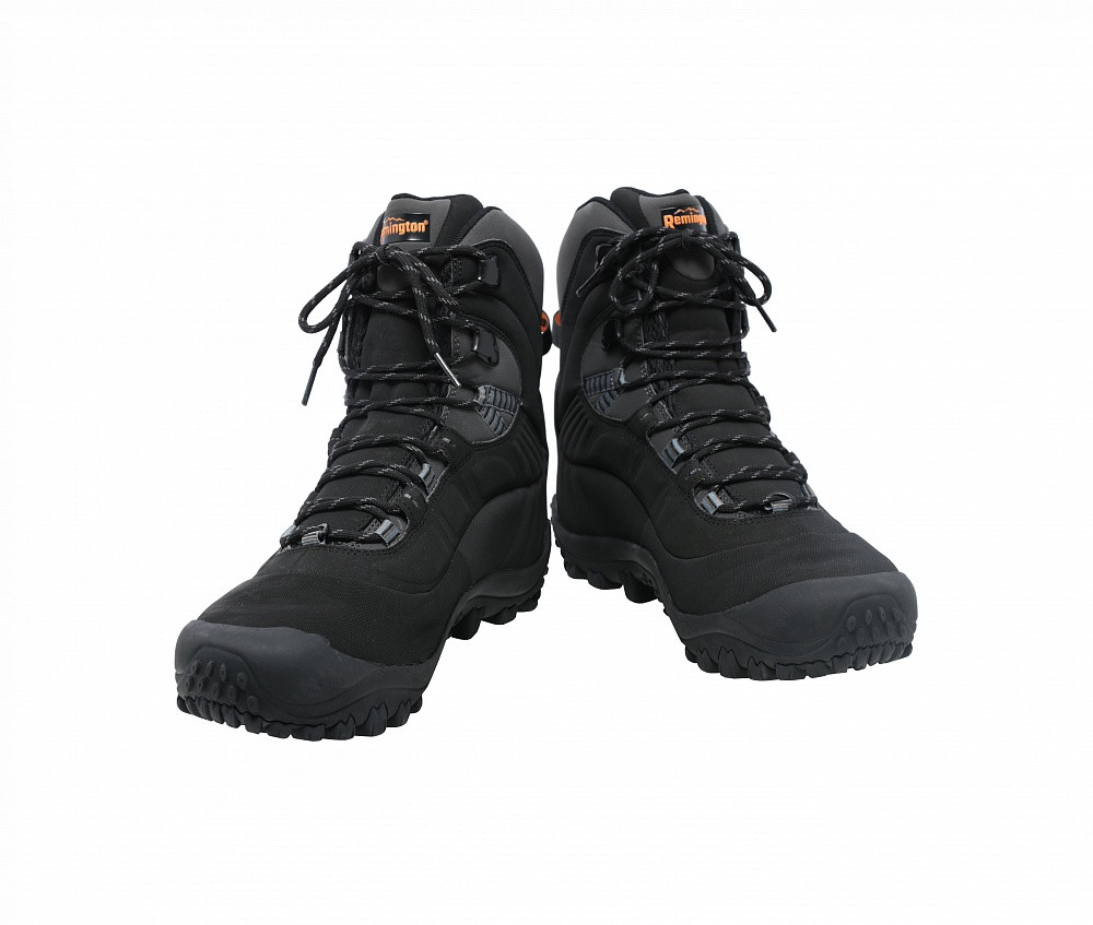 Ботинки Remington Thermo 8 Black New отличный вариант для холодной зимы. Модель выполнена из современного искусственного нубука обладающего высокими показателями износостойкости. Внутренняя подкладка из мембраны waterproof обеспечивает надежную защиту от промокания. Двухслойная подошва сочетает в себе эластичную резину, повышающую устойчивость к истиранию и улучшающую зацеп с поверхностью и современный EVA материал, дающий легкость изделию и обеспечивающий амортизационные качества. Благодаря технологичному утеплителю Thisulate 200g ботинки в ботинках будет комфортно при температуре до -25 градусов. Модель имеют усиление в носовой области и жёсткий задник из термопластического материала – все это повышает износостойкость модели, предотвращает механические повреждения и проникновение осадков внутрь.