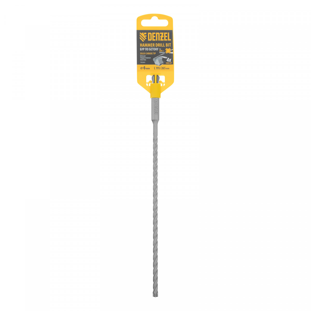 Бур по бетону, цельная крестовая пластина, 6x265 мм, SDS PLUS Denzel