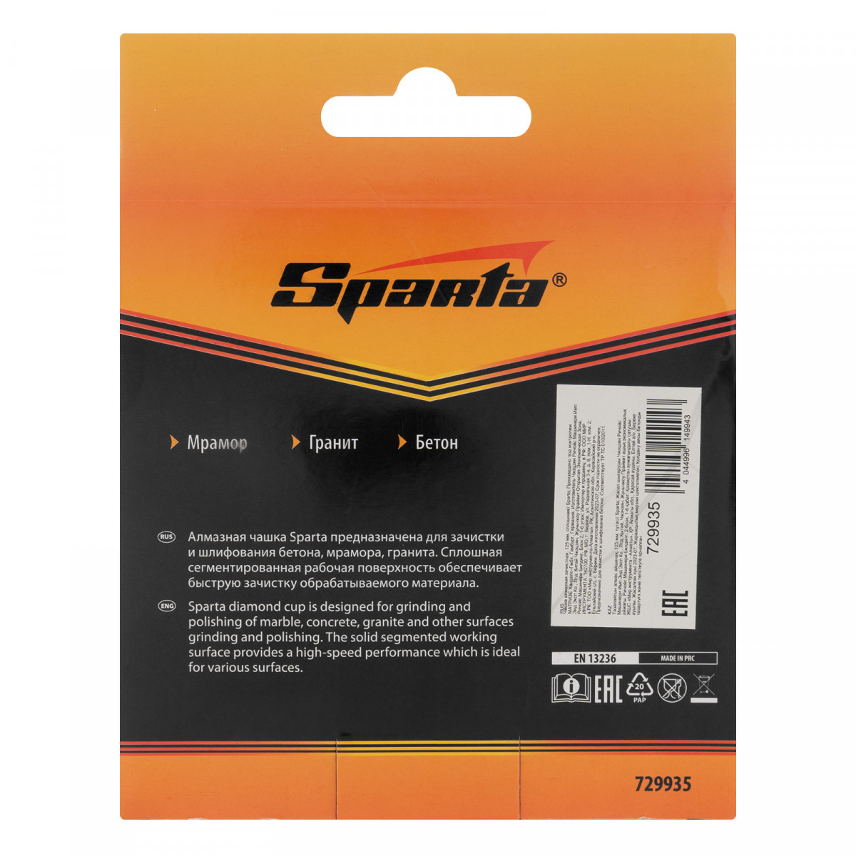 Сплошная алмазная зачистная чашка Sparta 729935 диаметром 125 мм, с посадочным отверстием 22,2 мм, устанавливается на вал углошлифовальной машины и используется для чистового шлифования бетонных, гранитных, мраморных, каменных поверхностей и кирпичной кладки. Также с ее помощью можно снимать фаску с гранитных и мраморных плит. Алмазный слой высотой 4,5 мм обеспечивает высокий рабочий ресурс насадки. Чашка рассчитана на бытовое применение.