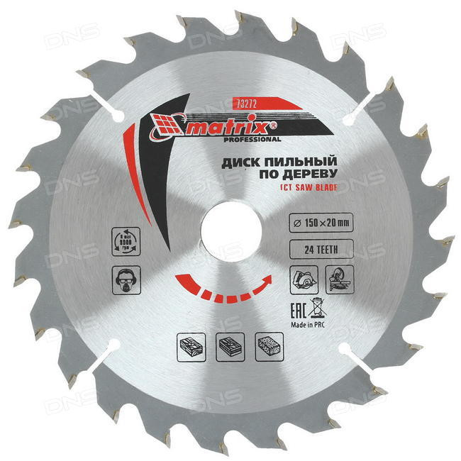 Диск 150*20 пильный по дереву 24 зуба + кольцо 16/20 MATRIX