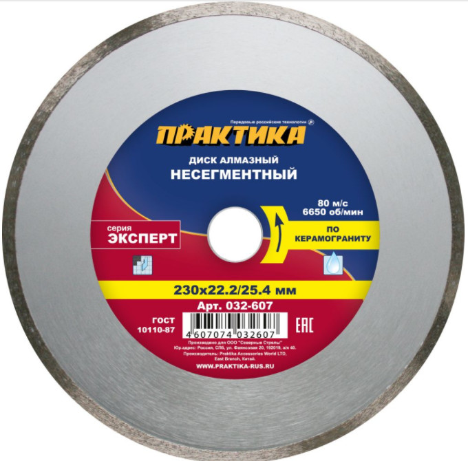 Серия «Эксперт». Тип 1A1R. Сегмент 7 мм. ГОСТ 10110-87. Специализированные тонкие диски для профессионального применения по керамическому граниту, плитке, различным изделиям из керамики. Для настольных пил и ручного инструмента. Обеспечивает идеальную чистоту кромок. Рекомендован для большого объема работ. Использовать охлаждение водой.