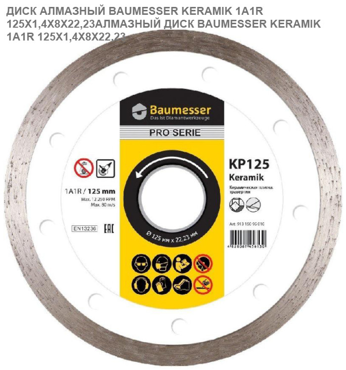 Диск алмазный BAUMESSER 1A1R 125×1,4×8×22,2 Keramik
