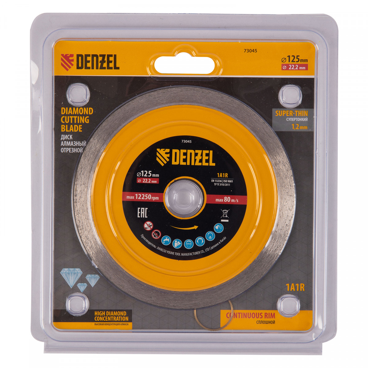 Диск алмазный отрезной 125 х 22,2 мм, сплошной, супертонкий, горячий пресс, мокрое резание Denzel