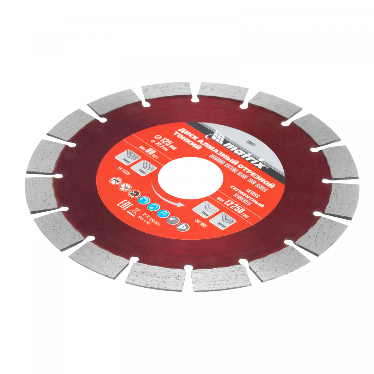 Диск алмазный, отрезной сегментный, 125 х 22.2 мм, тонкий, сухая резка Matrix Professional