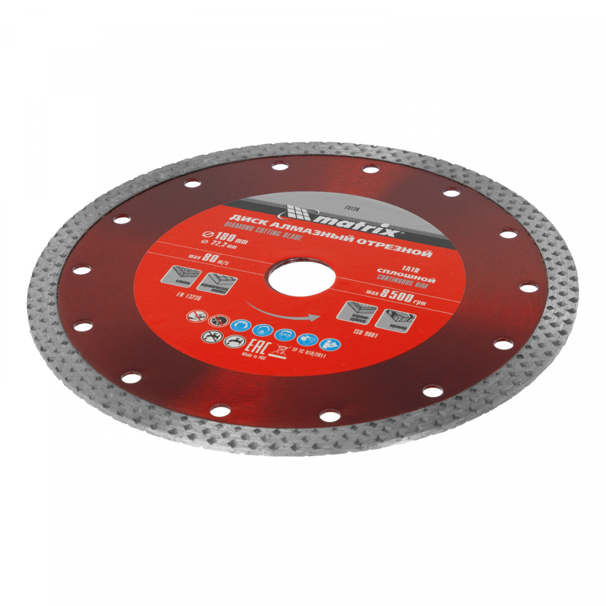 Диск алмазный, отрезной сплошной, 180 х 22.2 мм, сухая резка Matrix Professional