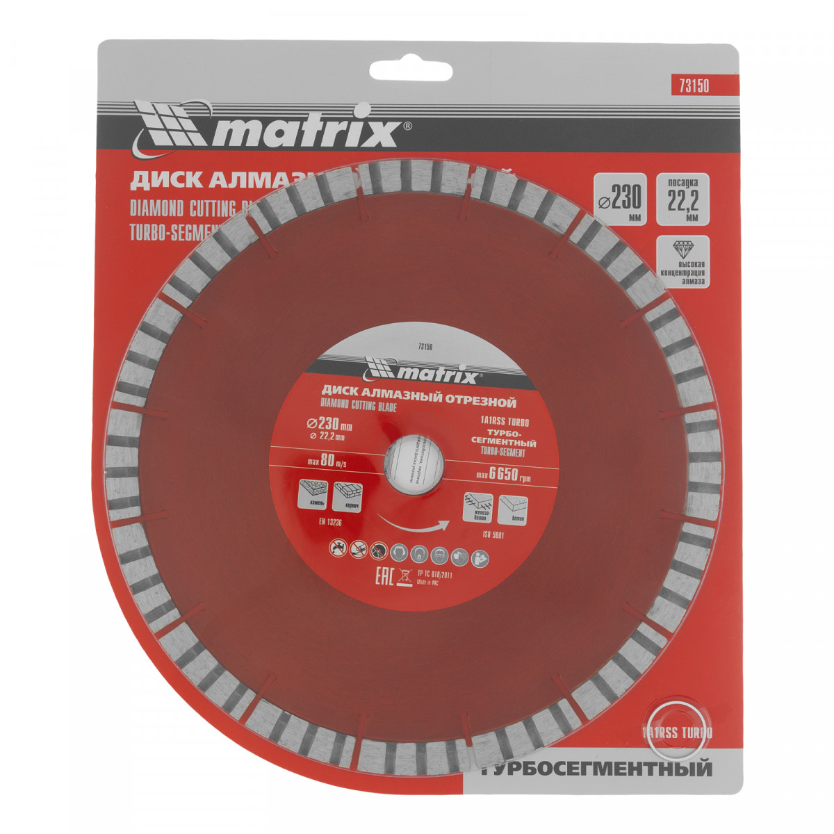 Диск алмазный, отрезной Турбо-сегментный, 230 х 22.2 мм, сухая резка Matrix Professional