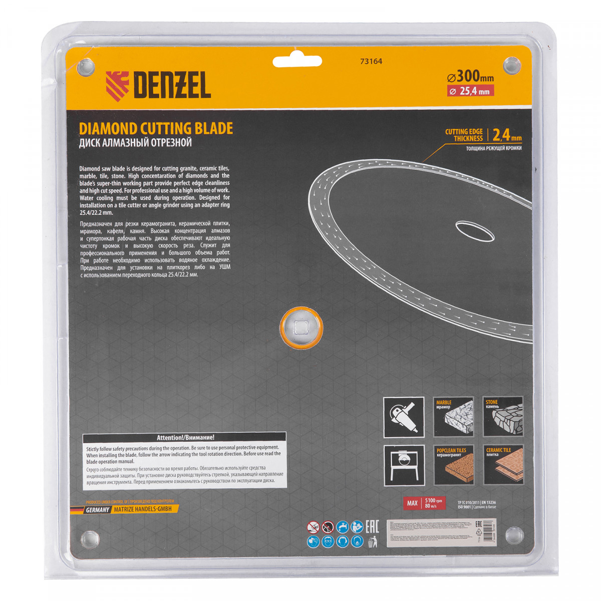 Диск алмазный сплошной, супертонкий, 300 х 25,4 мм, горячее прессование, мокрое резание Denzel