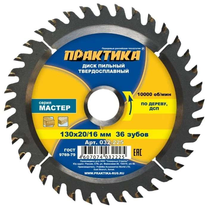 Диск пильный 130*20/16 мм 36 зубьев по дереву, ДСП "Практика"