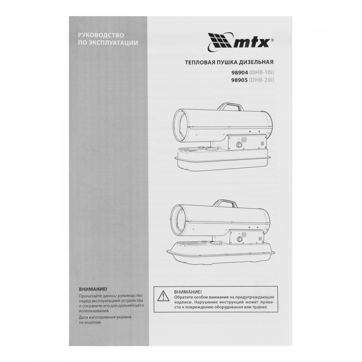Дизельная тепловая пушка DHB-10i, 10 кВт, 400 м3/ч, прямой нагрев, термостат MTX