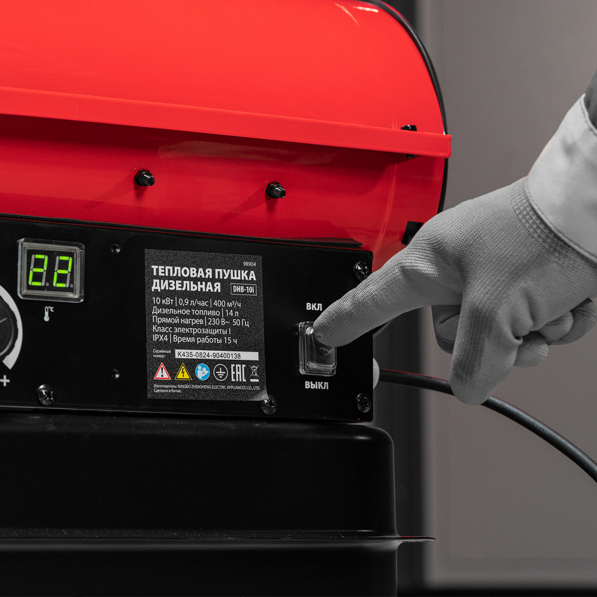 • Термозащита — в случае перегрева на LED-дисплее возникает ошибка и дизельная пушка отключается.