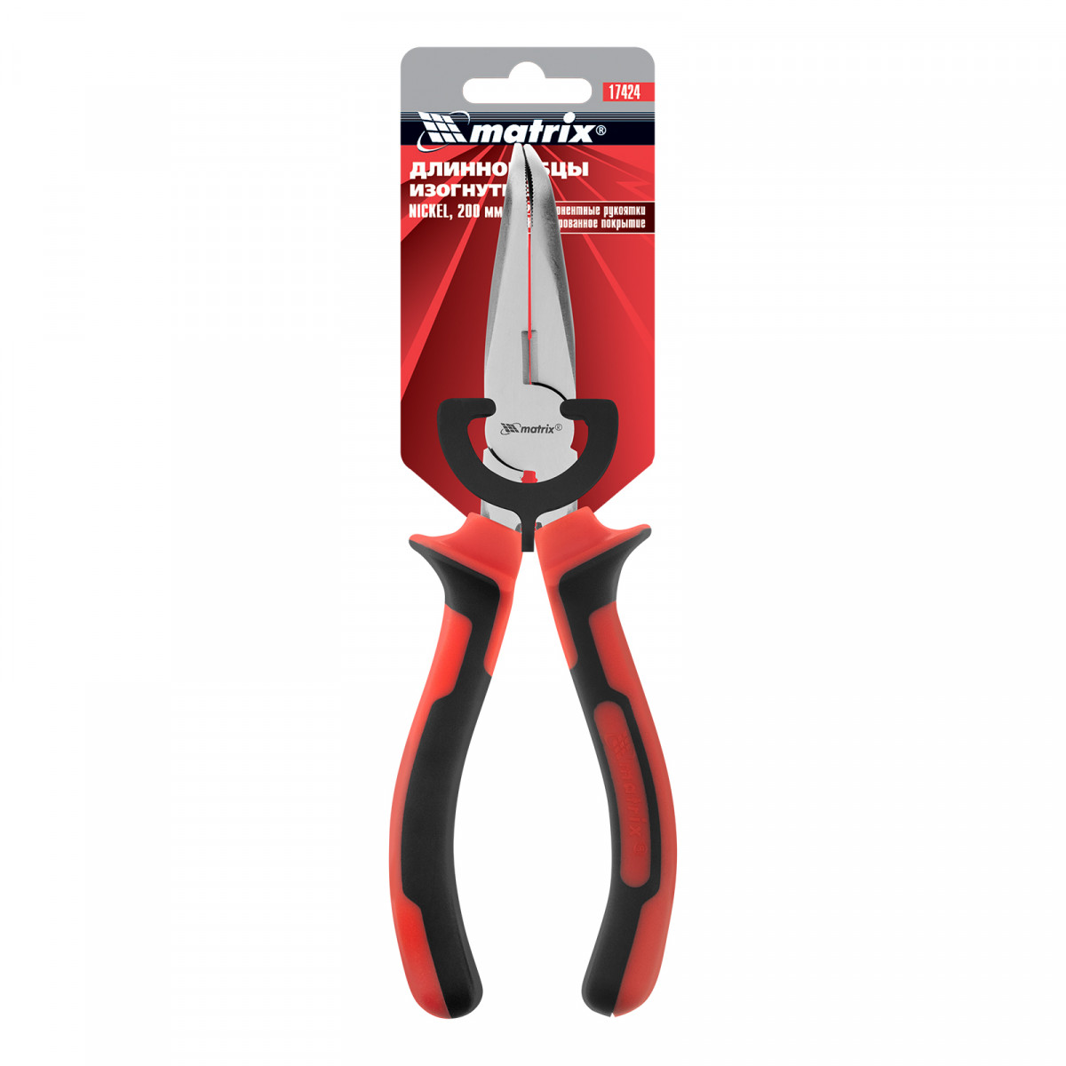 Длинногубцы изогнутые Nickel, 200 мм, никелированные, двухкомпонентные рукоятки Matrix