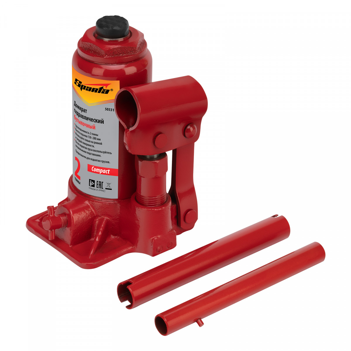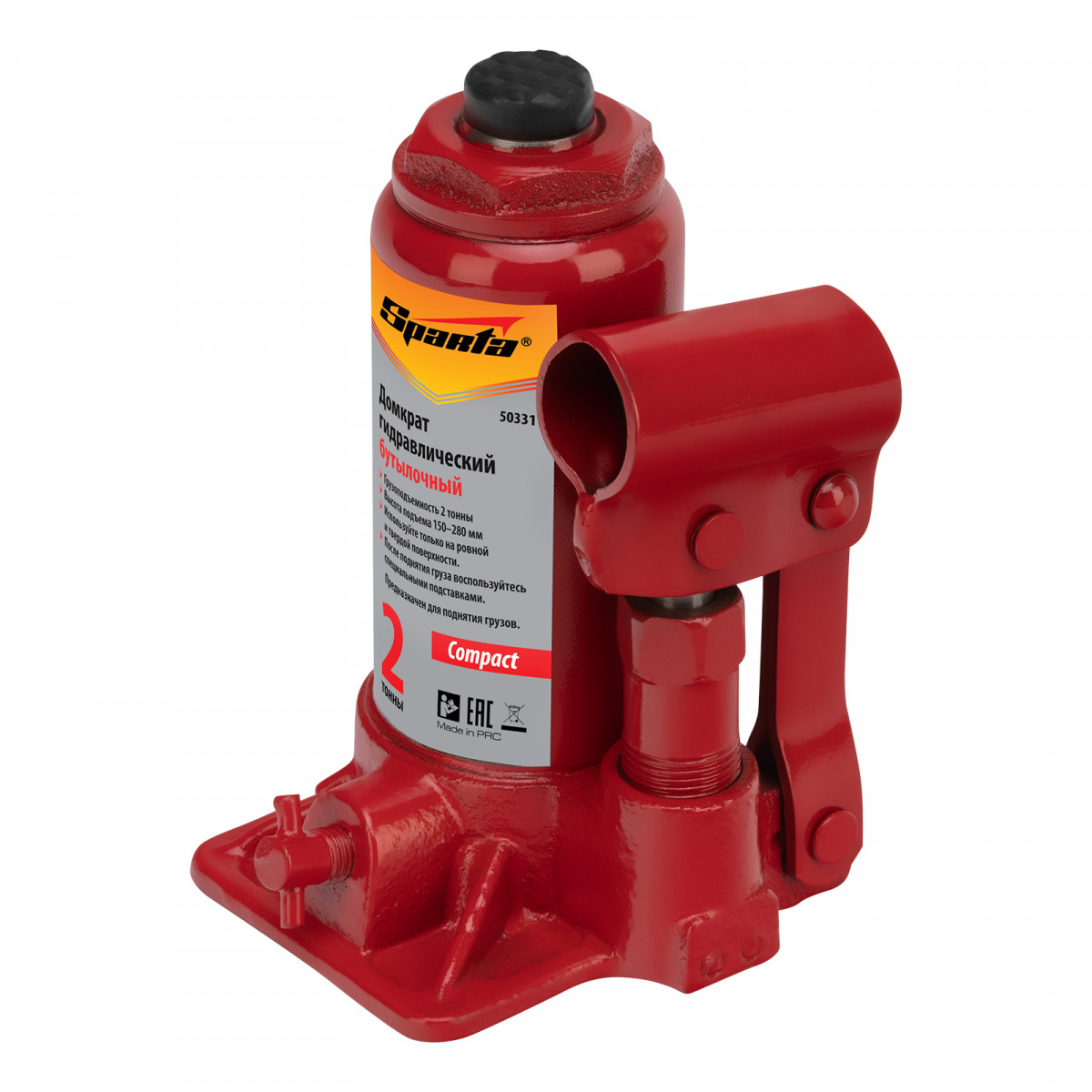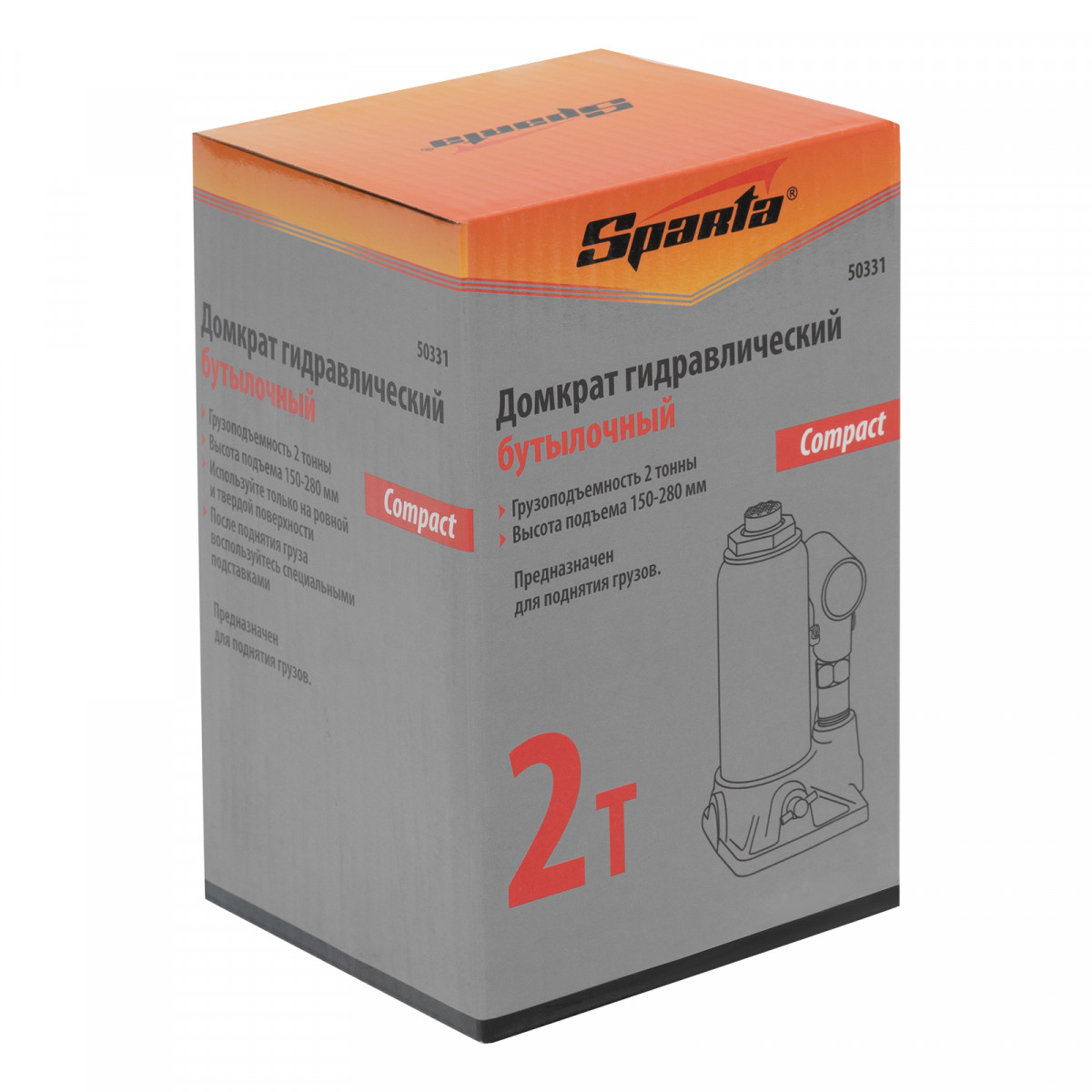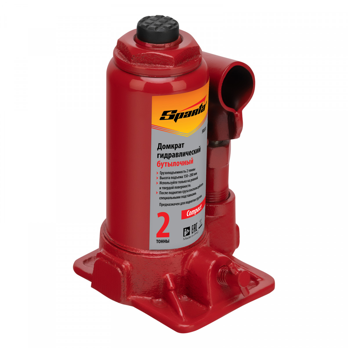 Домкрат гидравлический бутылочный 2 т, h подъема 150-280 мм Sparta Compact