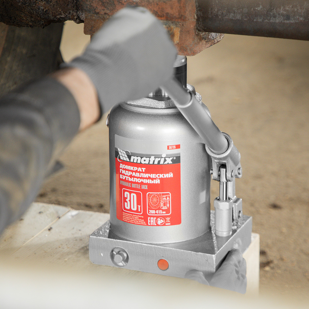 Домкрат гидравлический бутылочный, 30 т, высота подъема 260-415 мм Matrix