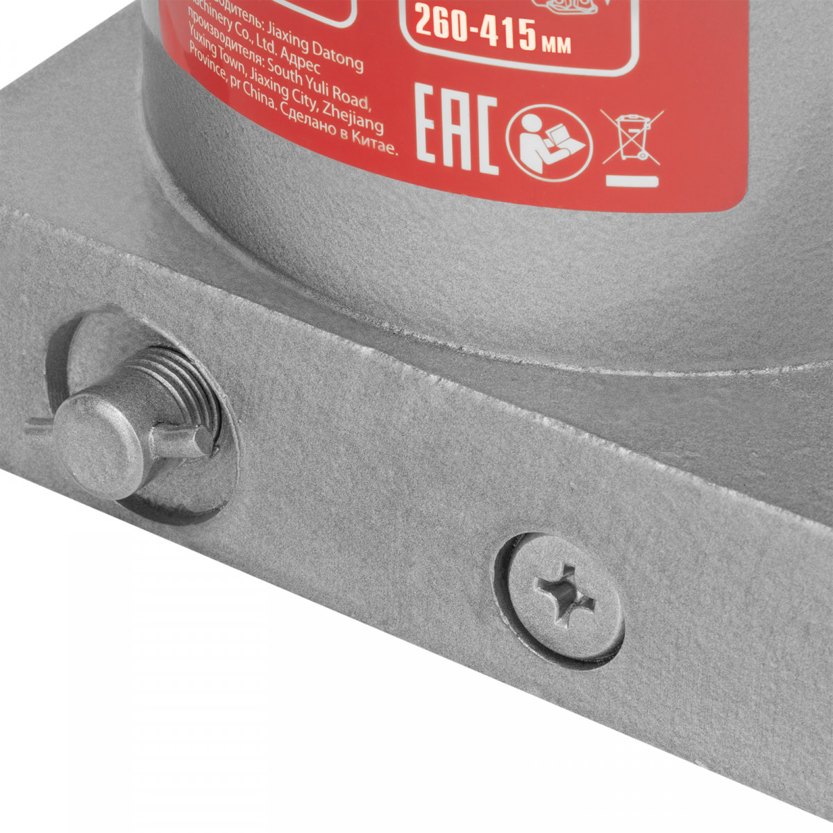 - Надежная конструкция — домкрат имеет устойчивое чугунное основание, корпус из высокопрочной стали, а также полированный шток, увеличивающий срок службы.
