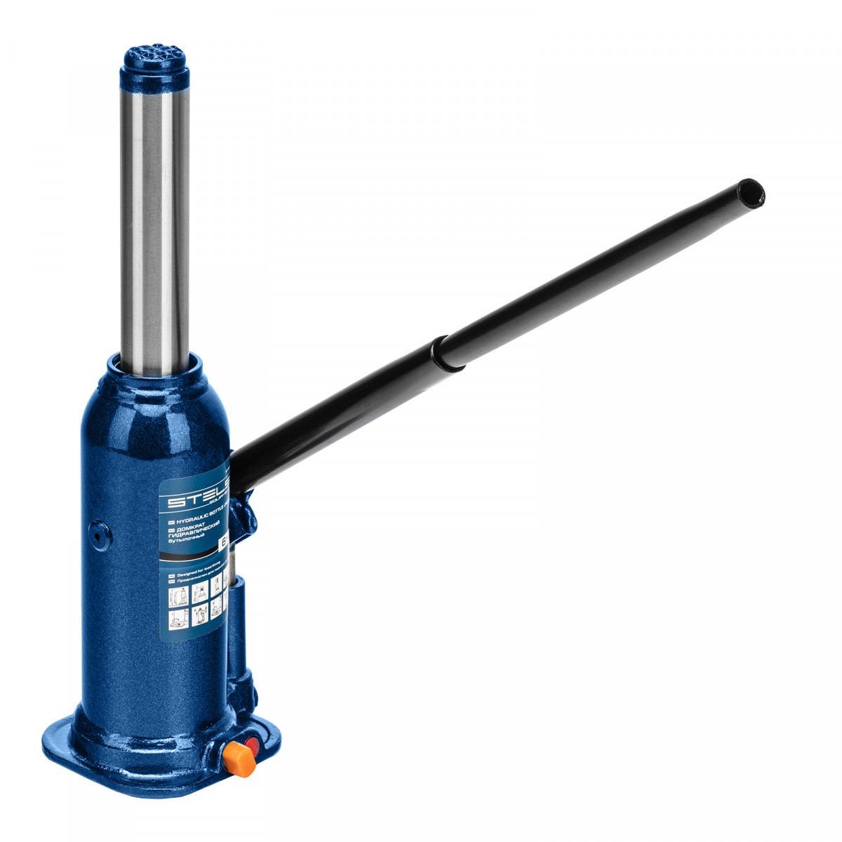 • Безопасная эксплуатация — благодаря предохранительному клапану домкрат не поднимает грузы тяжелее 6000 кг.
