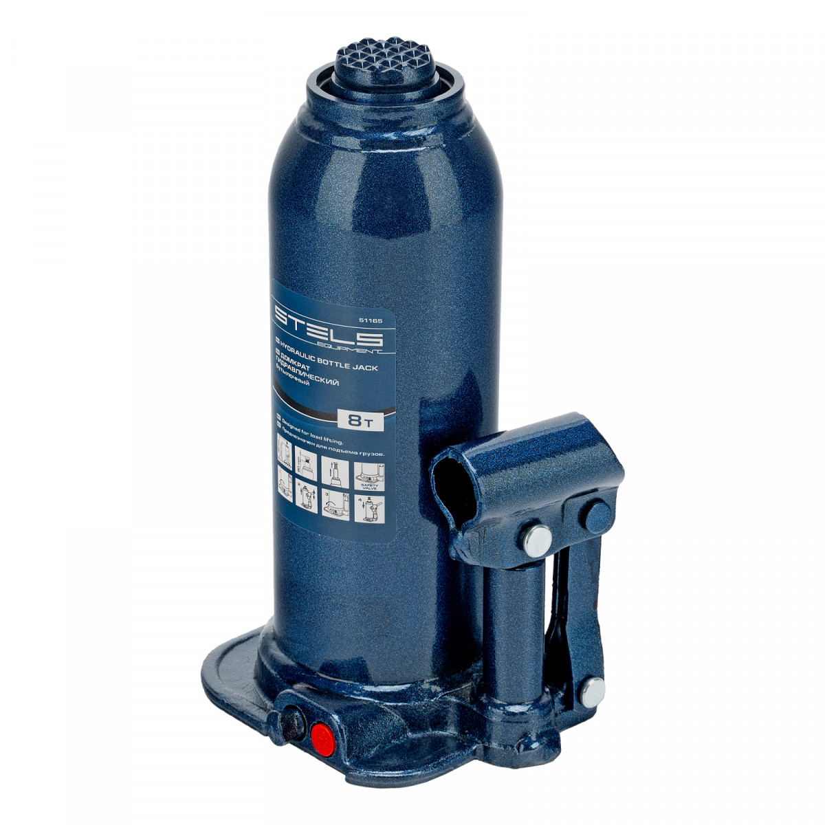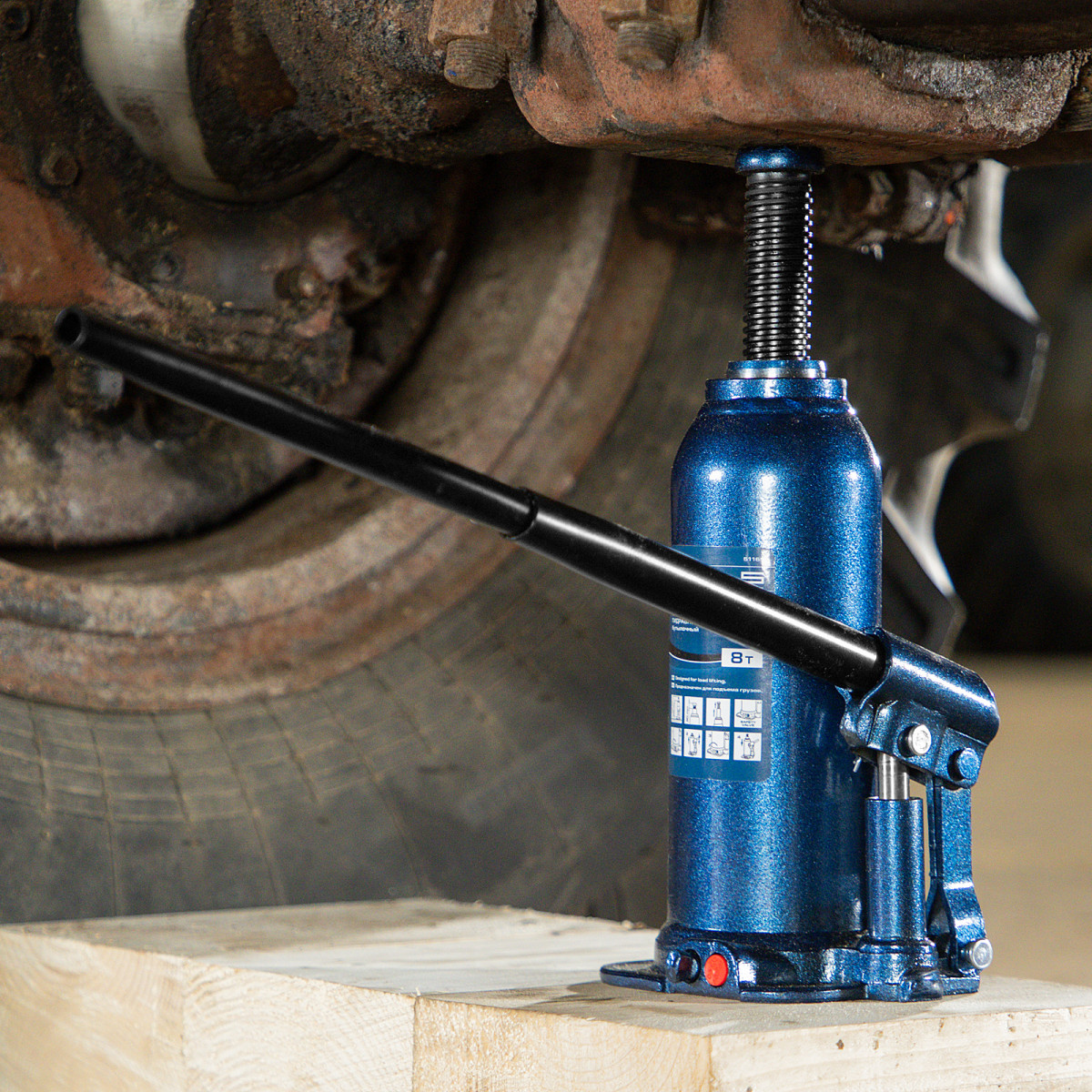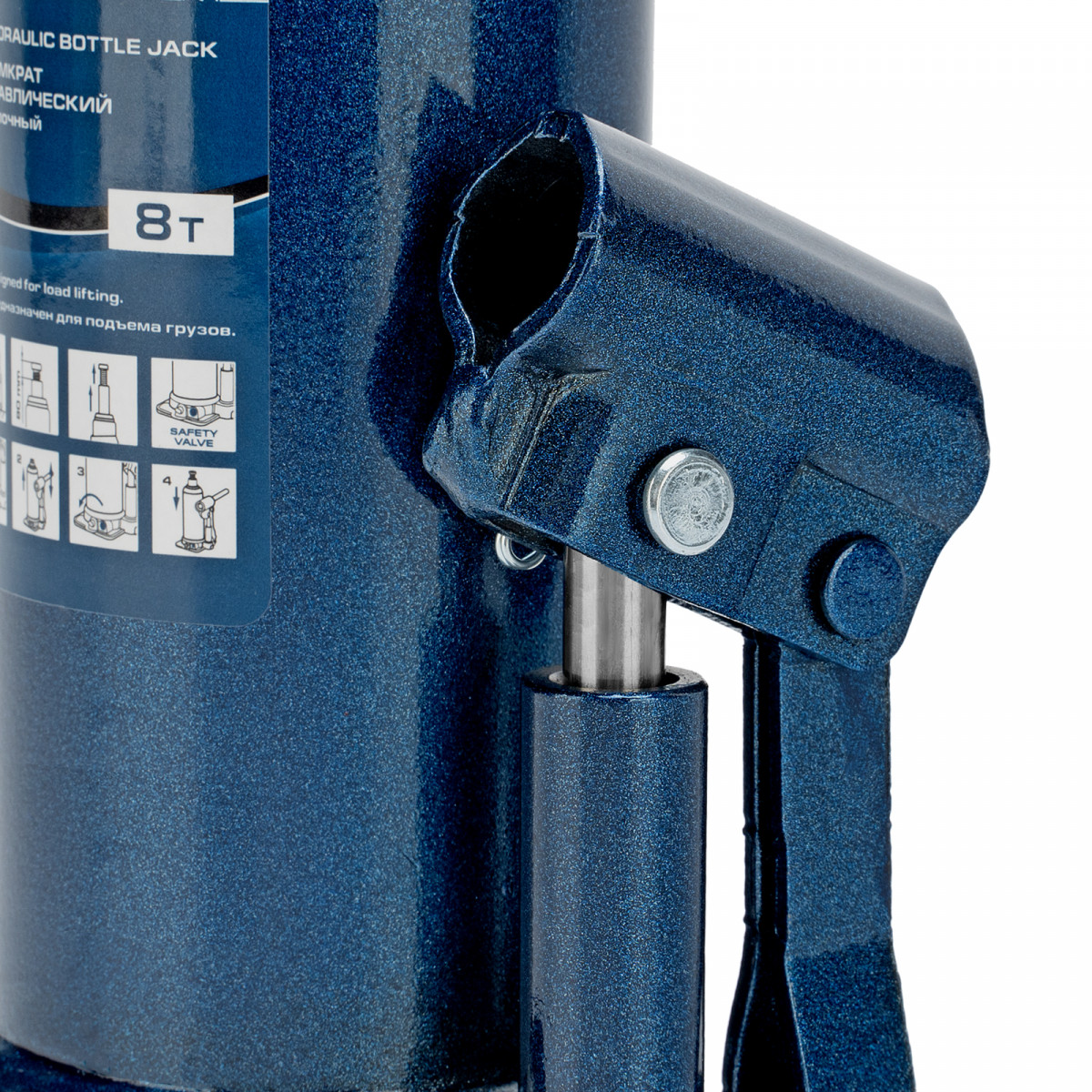 • Безопасная эксплуатация — благодаря предохранительному клапану домкрат не поднимает грузы тяжелее 8000 кг.