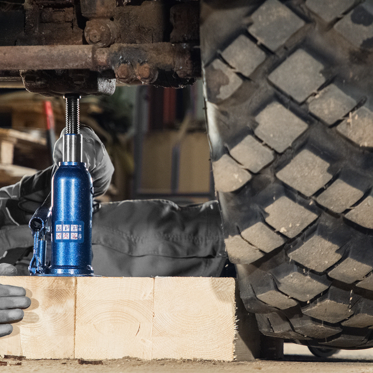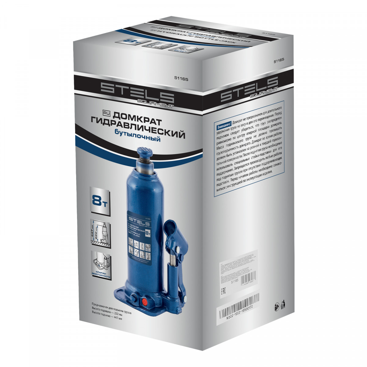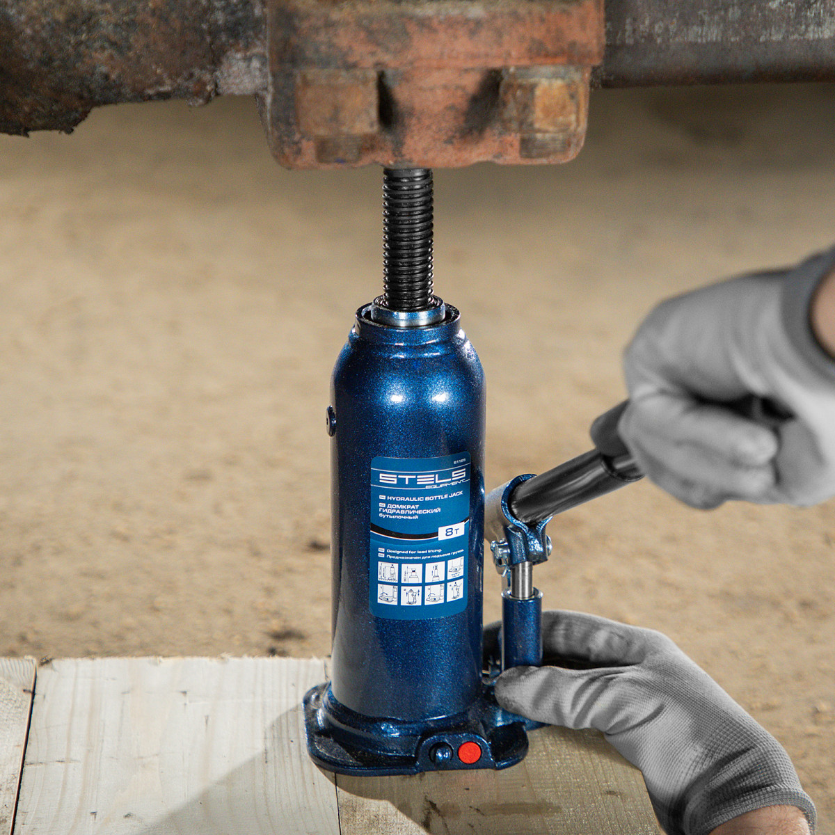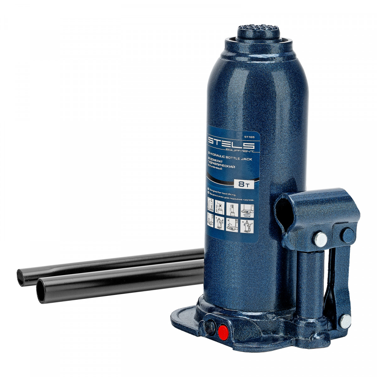 • Безопасная эксплуатация — благодаря предохранительному клапану домкрат не поднимает грузы тяжелее 8000 кг.
