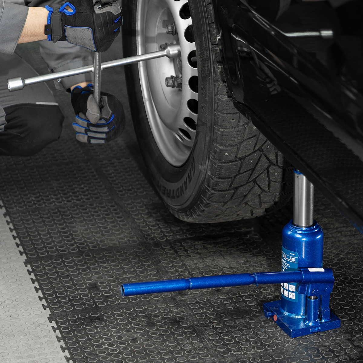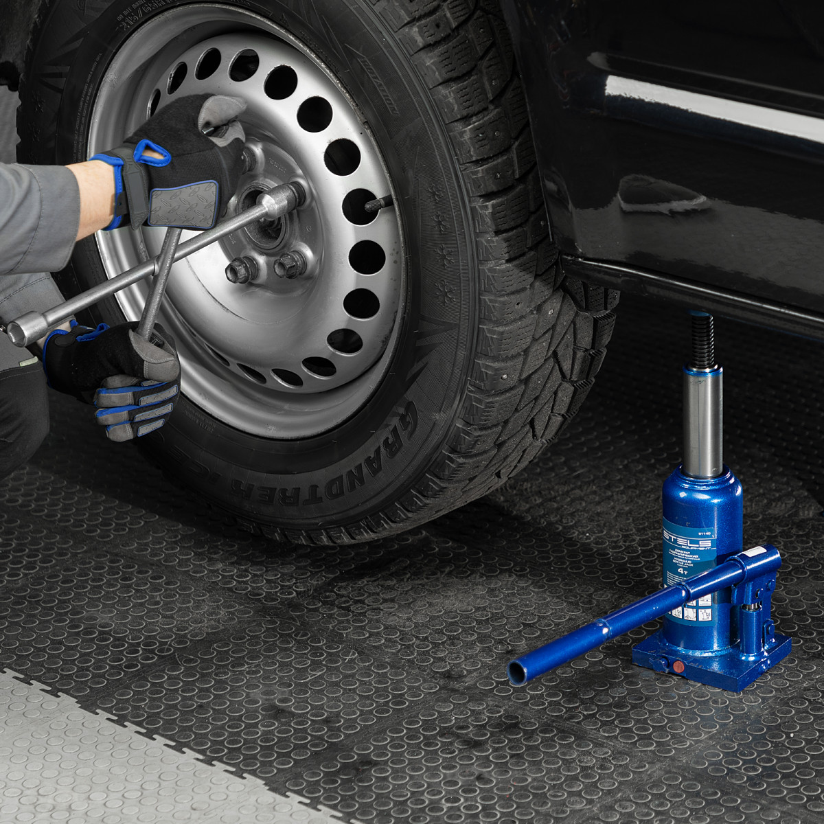 - Малый вес 4,7 кг — домкрат легко перемещать и перевозить в багажнике машины.