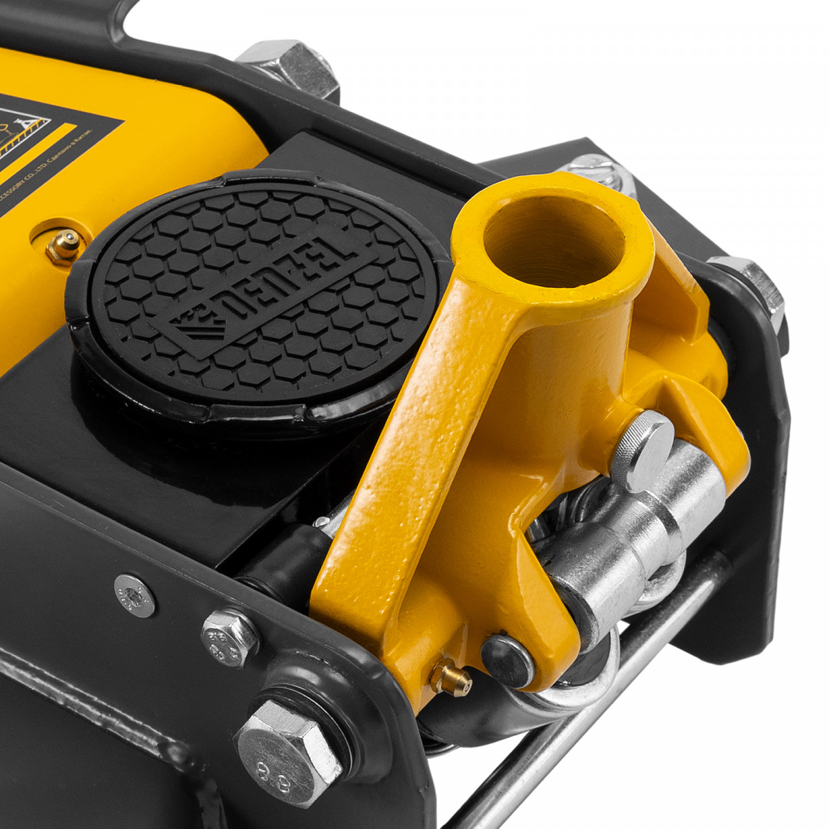 - Высокий ресурс — масленка на подъемном рычаге позволяет легко смазывать инструмент для снижения трения между движущимися механизмами, что повышает эффективность работы домкрата и продлевает его срок службы.