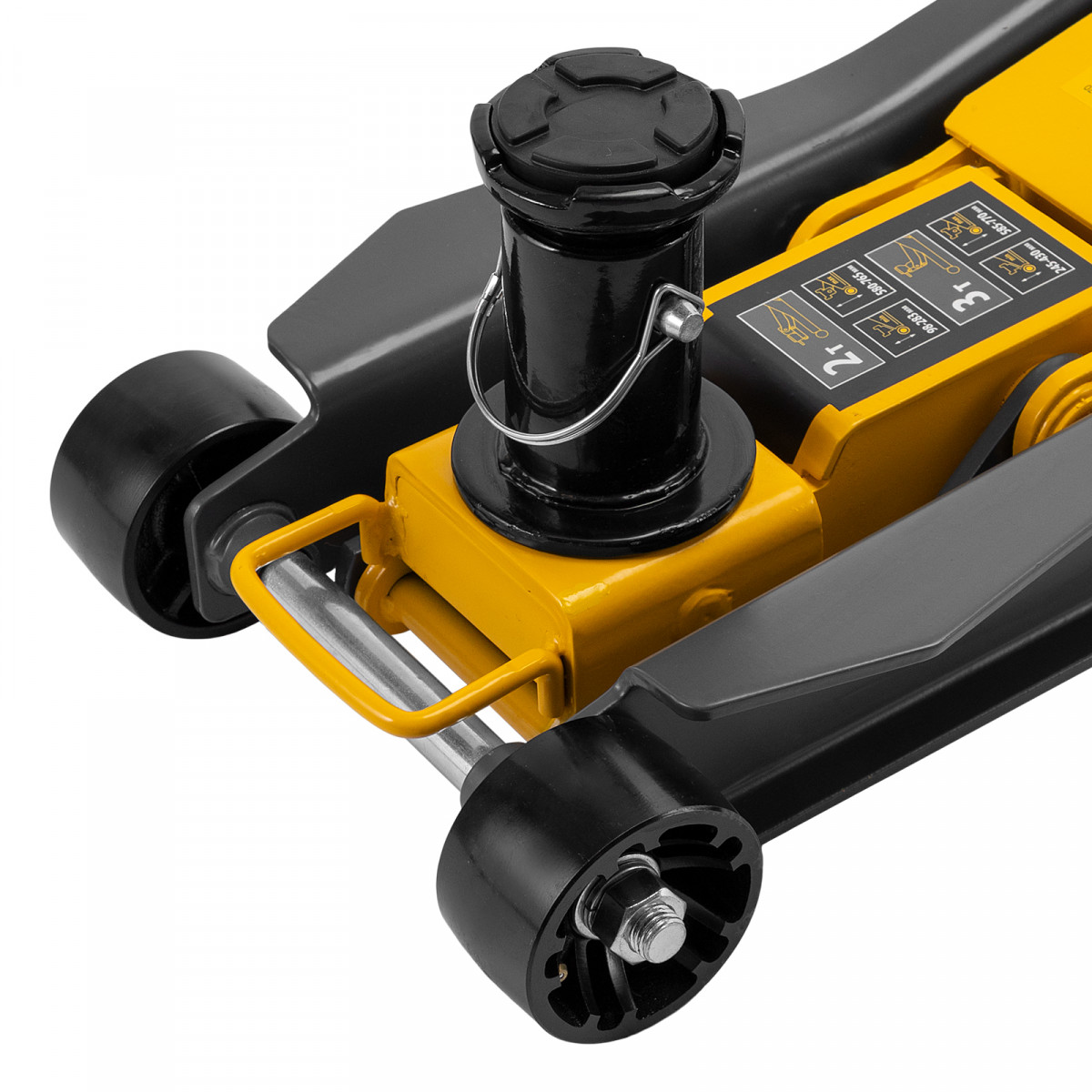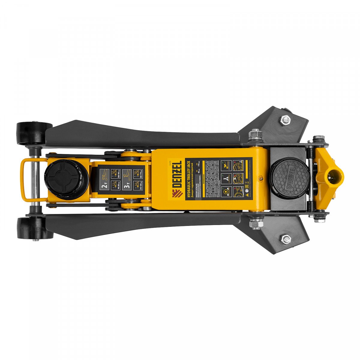 Профессиональный подкатной гидравлический домкрат Denzel 51270 с низким подхватом используется для быстрого подъема на высоту 98-770 мм всех типов автомобилей с любым клиренсом и массой до 2-3 т, в том числе SUV (внедорожников). Регулируемая проставка позволяет менять высоту подхвата и подъема, а также максимальную грузоподъемность. Высота подъема до 770 мм позволяет без труда обслуживать автомобили с высоким клиренсом, такие как рамные внедорожники, например, Dodge RAM, Ford Raptor и т.д.