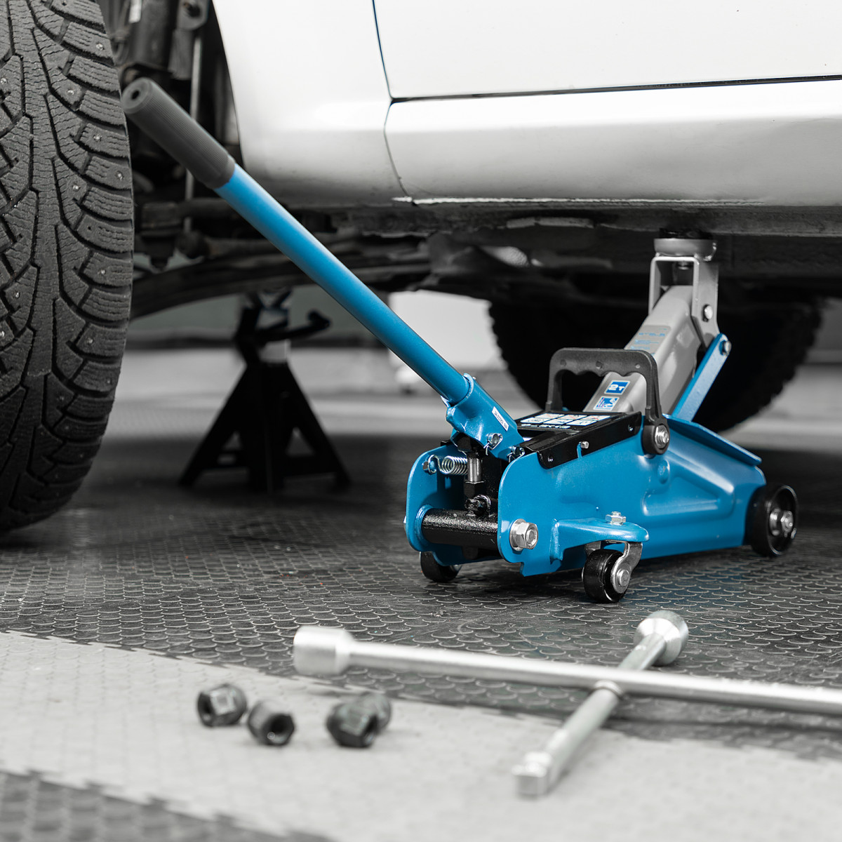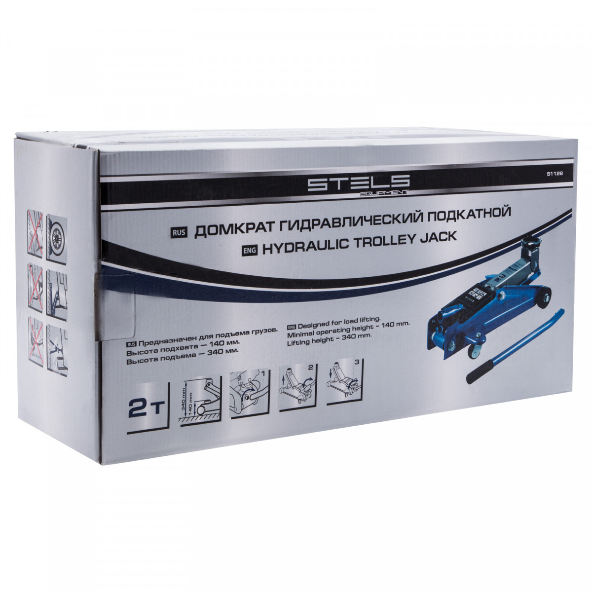 Подкатной гидравлический домкрат Stels 51128, поставляющийся в кейсе, способен поднимать груз массой до 2 т на высоту 140-340 мм. Подходит для легковых автомашин и кроссоверов со стандартным клиренсом. Усиленная конструкция выдерживает повышает надежность домкрата. Домкрат пригодится в частном гараже и на станции техобслуживания.