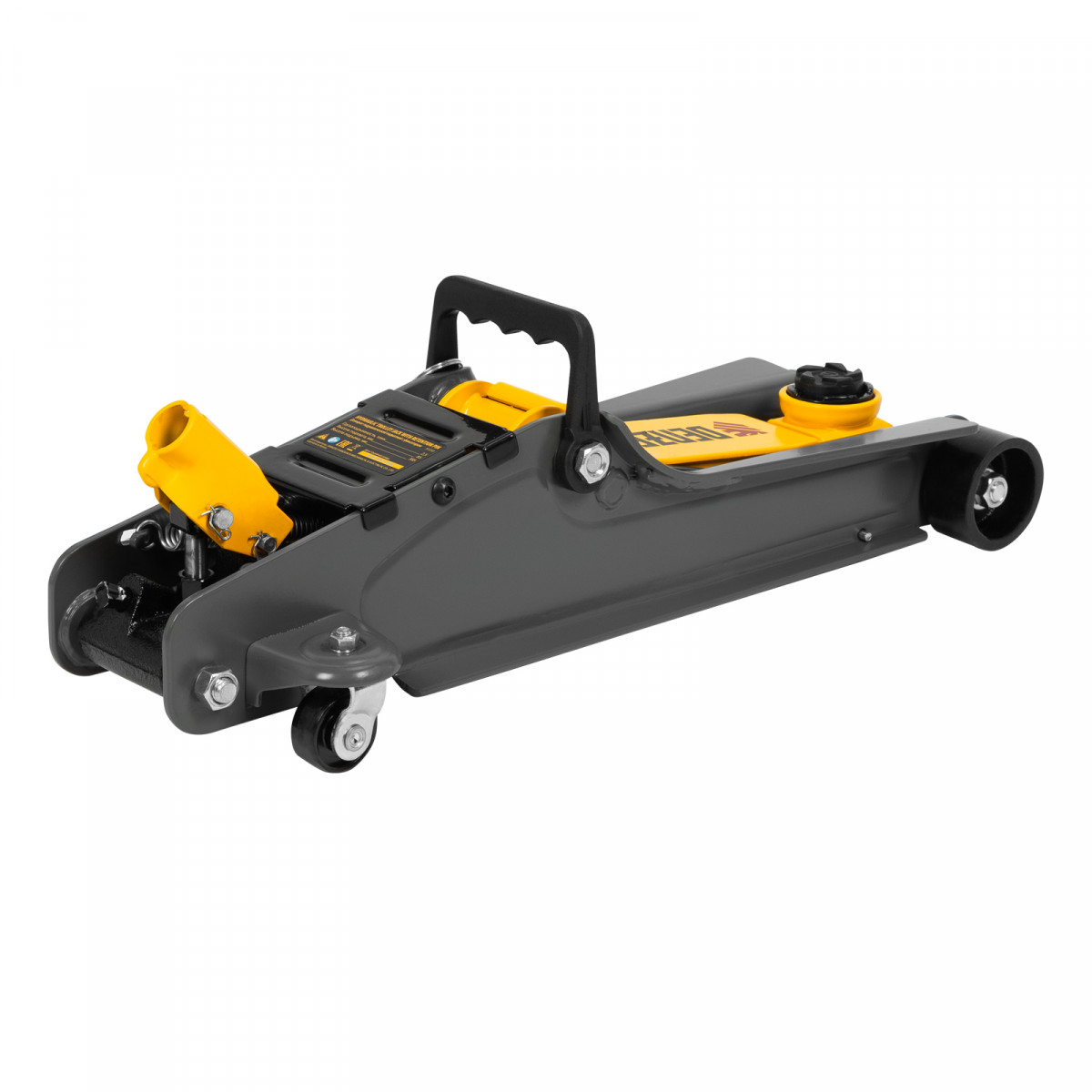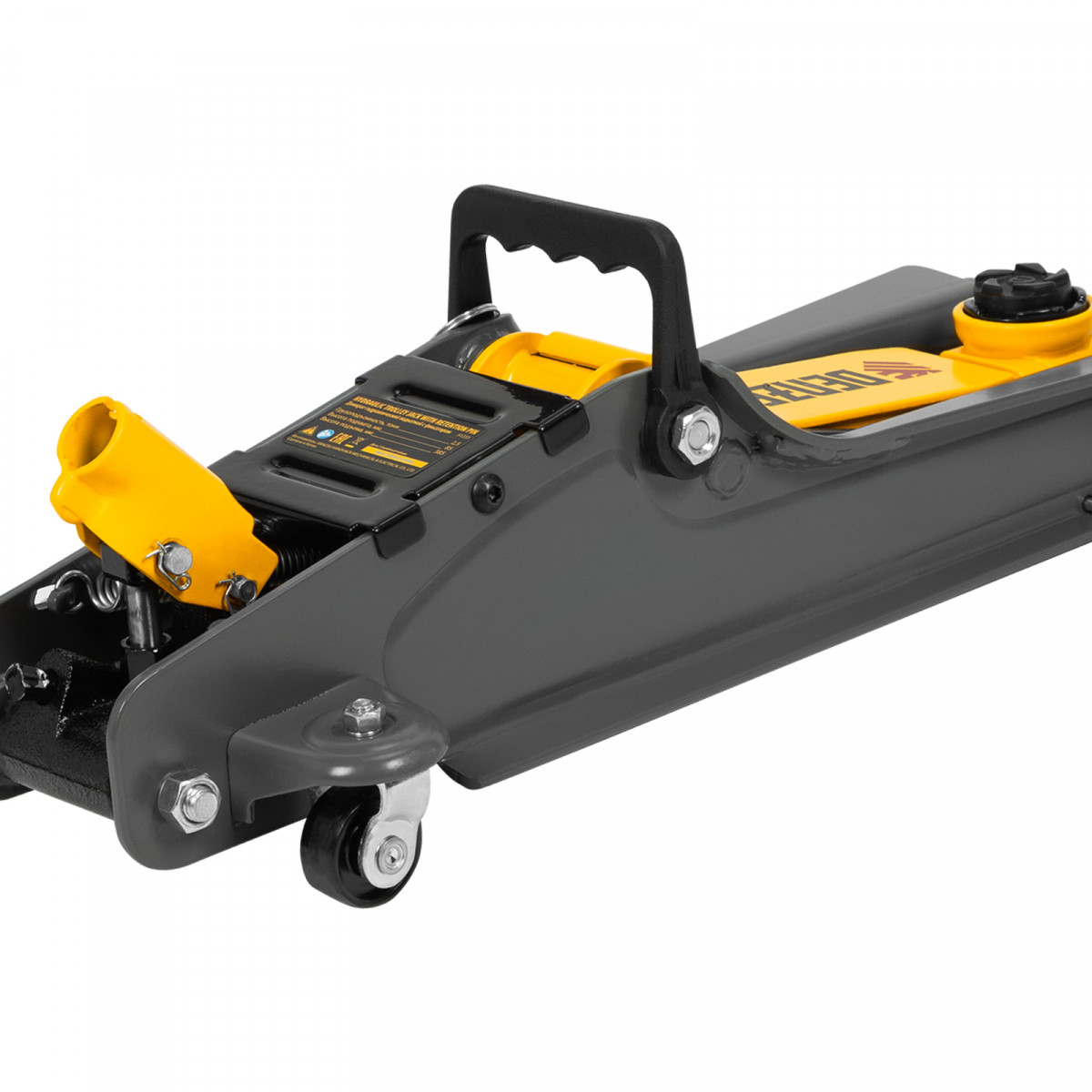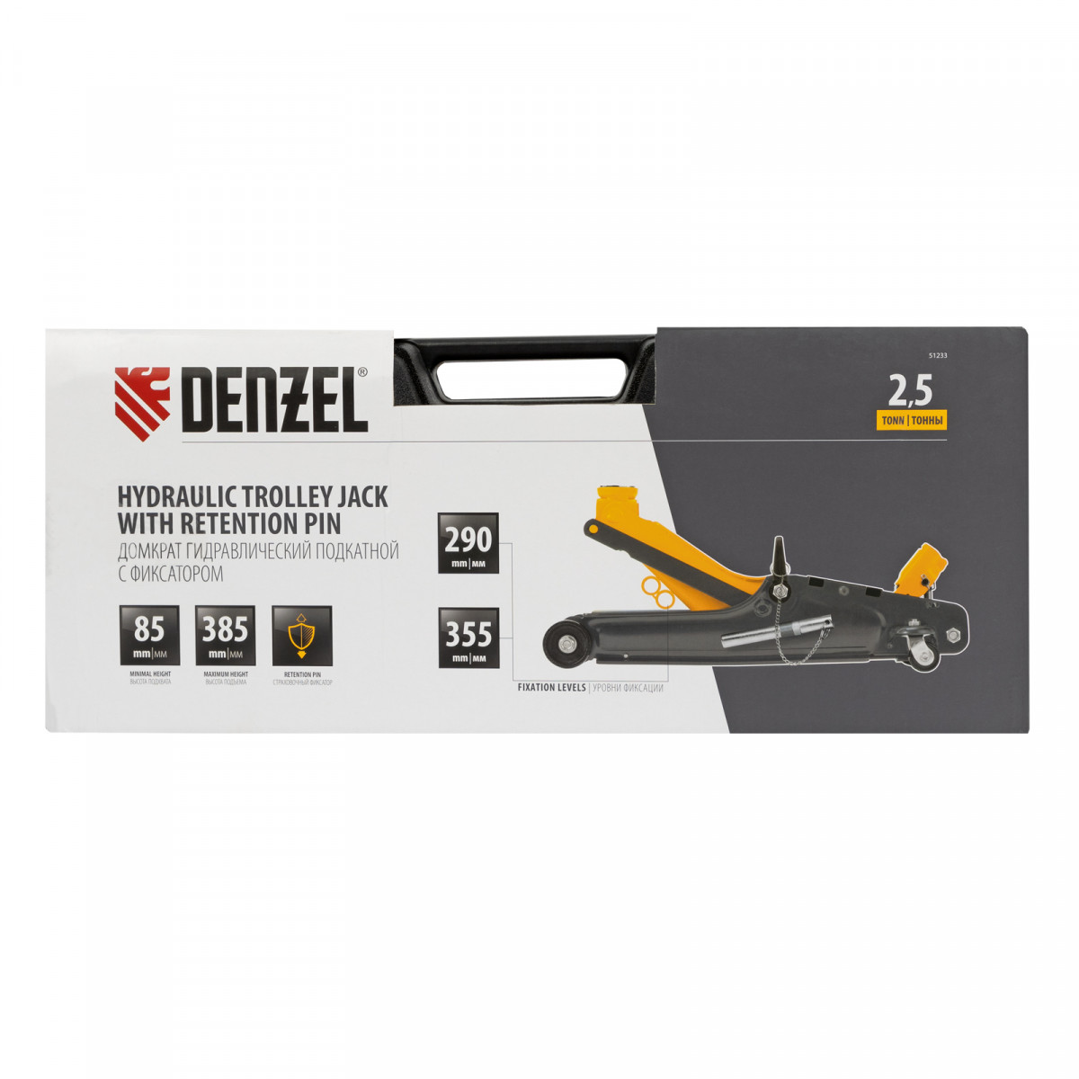 Домкрат гидравлический подкатной с фиксатором, 2,5 т, 85-385 мм, в пласт. кейсе Denzel