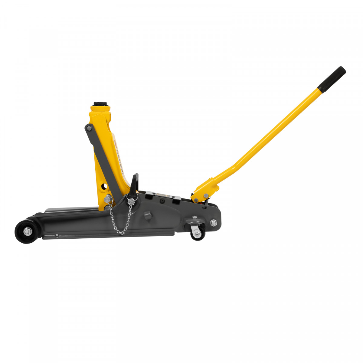 Гидравлический подкатной домкрат Denzel 51233 с фиксатором, поставляющийся в кейсе, имеет высоту подхвата 85 мм и предназначен для плавного подъема грузов массой до 2,5 т на высоту до 385 мм. Страховочный штифт позволяет фиксировать подъемный рычаг на высоте 290 и 355 мм для безопасной работы. Домкрат пригодится владельцам легковых автомобилей с низким и стандартным клиренсом.