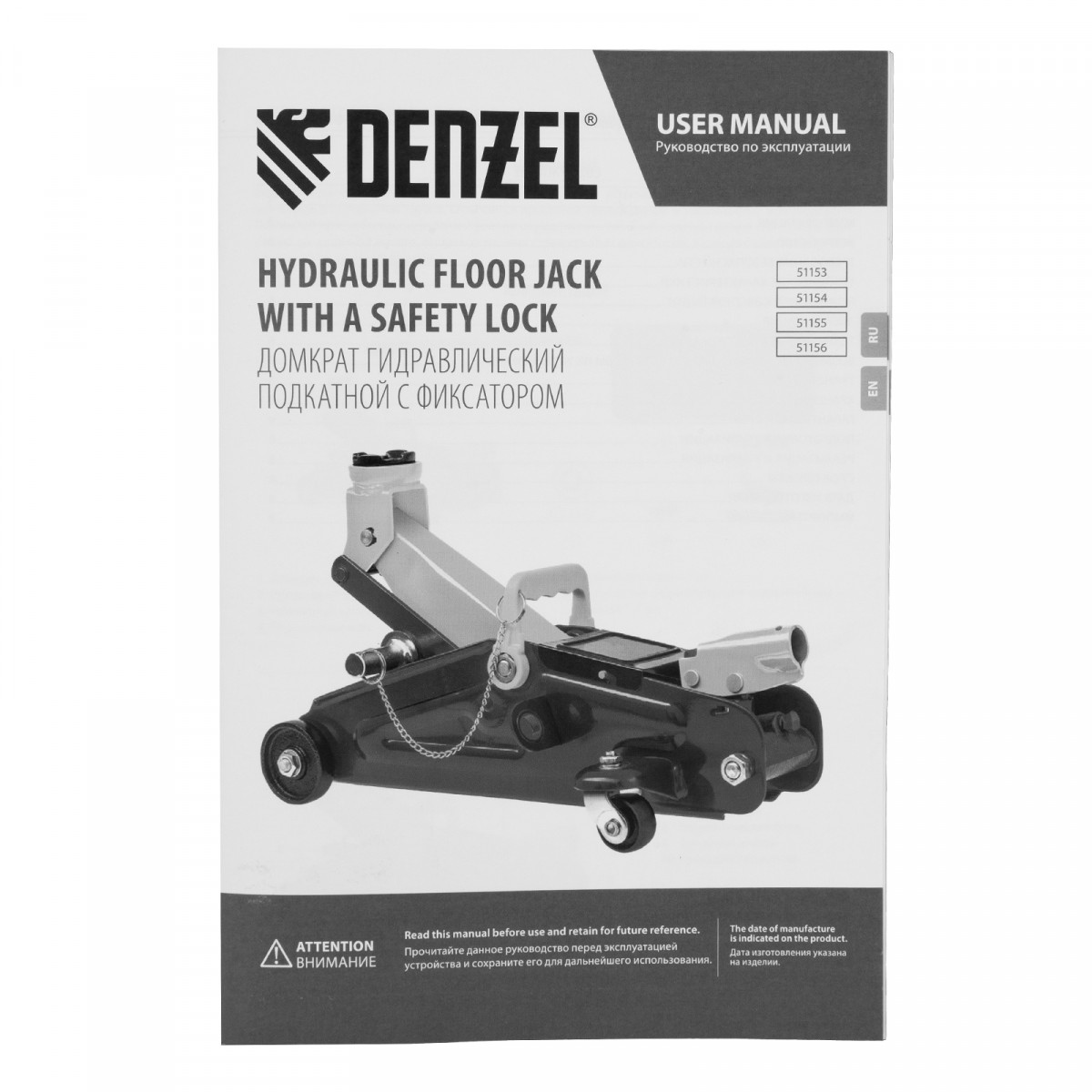 Домкрат гидравлический подкатной с фиксатором, 2 т, 130-330 мм, в кейсе Denzel