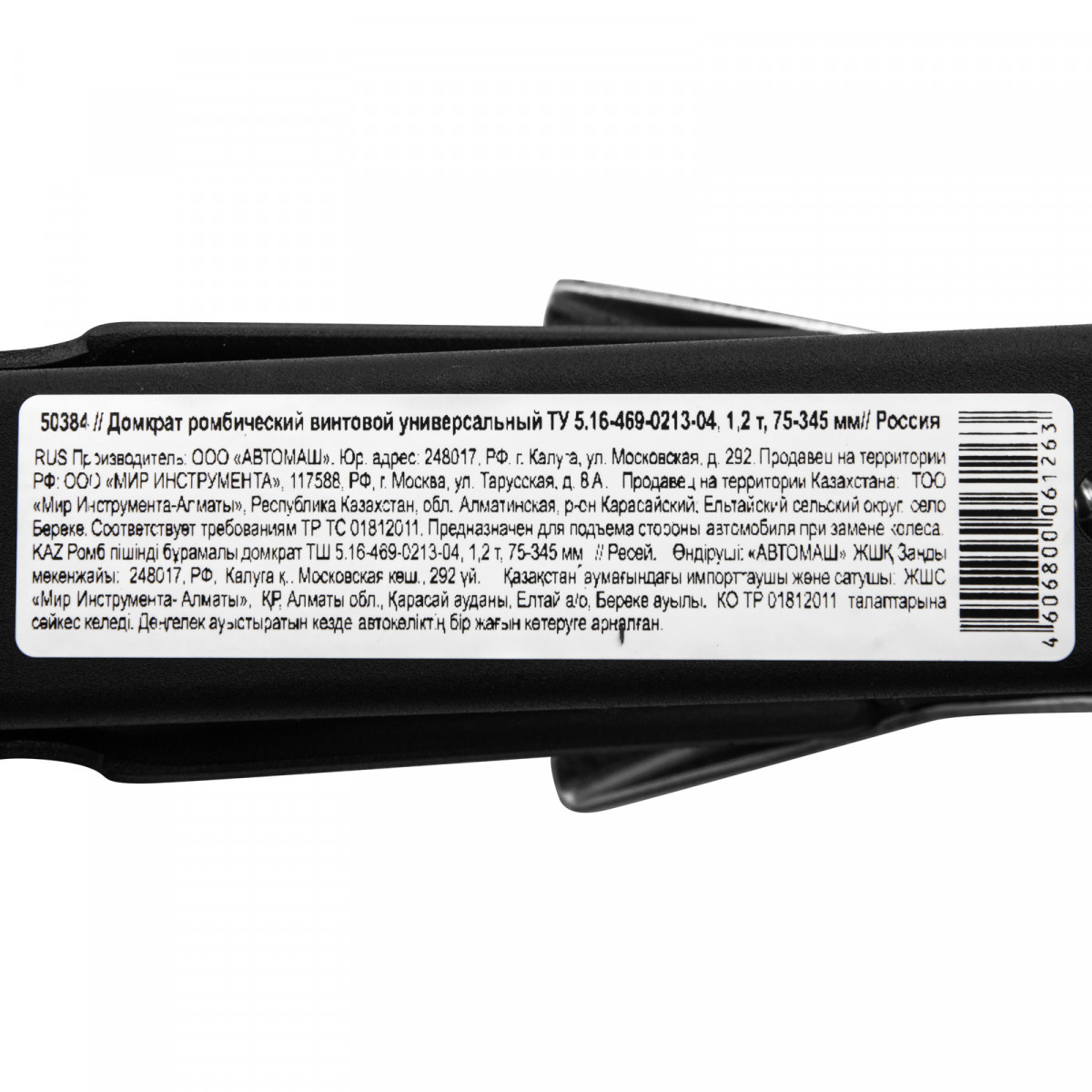 Домкрат ромбический винтовой универсальный ТУ 5.16-469-0213-04, 1.2 т, 75-345 мм Россия