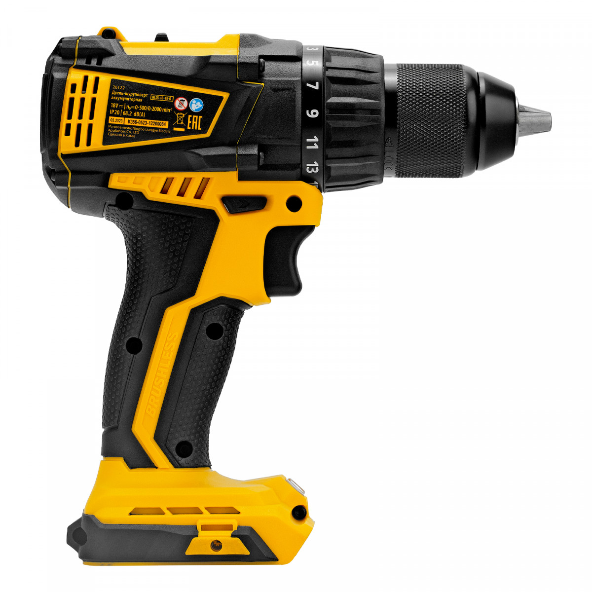 Мощный бесщеточный двигатель обеспечивает 20-30% более высокий КПД по сравнению с коллекторными дрелями.