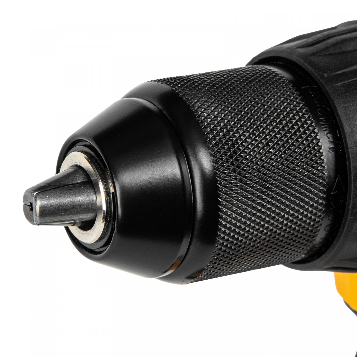 - Легкая замена оснастки — быстрозажимной одномуфтовый металлический патрон в сочетании с функцией блокировки шпинделя позволяет одной рукой устанавливать биту или сверло.