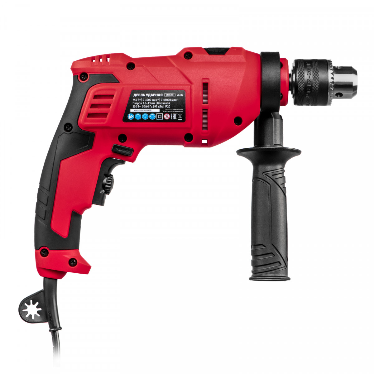 Дрель ударная MTX MID-750 26382 мощностью 750 Вт предназначена для сверления и сверления с ударом отверстий в древесине (до 25 мм), металле (до 10 мм), бетоне (до 13 мм). Ключевой патрон совместим со сверлами диаметром от 1,5 до 13 мм. Частота вращения плавно меняется в зависимости от степени нажатия на кнопку пуска, что облегчает работу с материалами разной плотности.