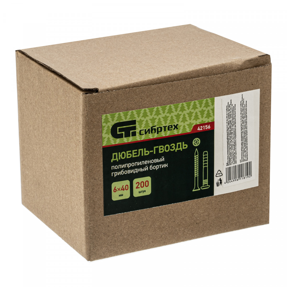 Полипропиленовый дюбель-гвоздь Сибртех 42156 с грибовидным бортиком, размером 6 х 40 мм, 200 шт. в упаковке, используется при проведении ремонтных и отделочных работ. Позволяет крепить плинтусы, рейки, рамки, зажимы, монтажные короба, держатели для труб. Грибовидный бортик плотно прижимает деталь к основанию. Гвоздевой дюбель применяется в профессиональной сфере, подходит также для самостоятельного обустройства квартиры или дачи.